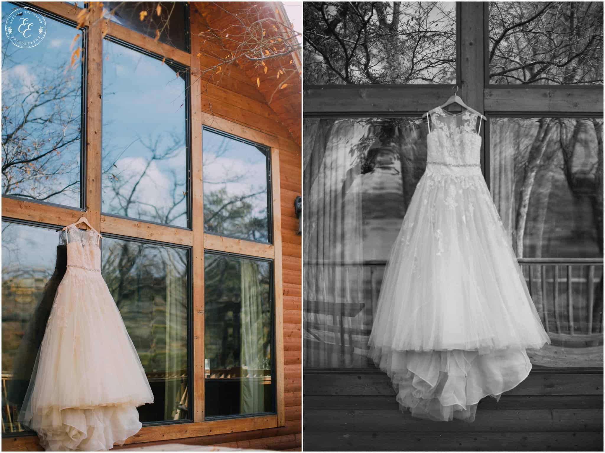 When we arrived to the venue for this styled shoot last December we were welcomed by the owner, Mark, who allowed us all to get ready in one of the beautiful new cabins that you’ll see the dress from Fiancee’ Bridal Boutique hanging from. You could smell the fresh cedar all around from the gorgeous cabins. He even let us use the golf carts to get from one end of the venue to the other quicker. I admit I had a little too much fun zipping and driving around from one spot to the other.. “Do you need anything?! I’ll get it!” .. just another excuse to jump and drive in the wind haha!