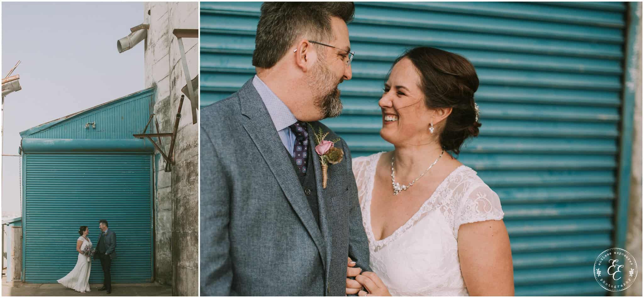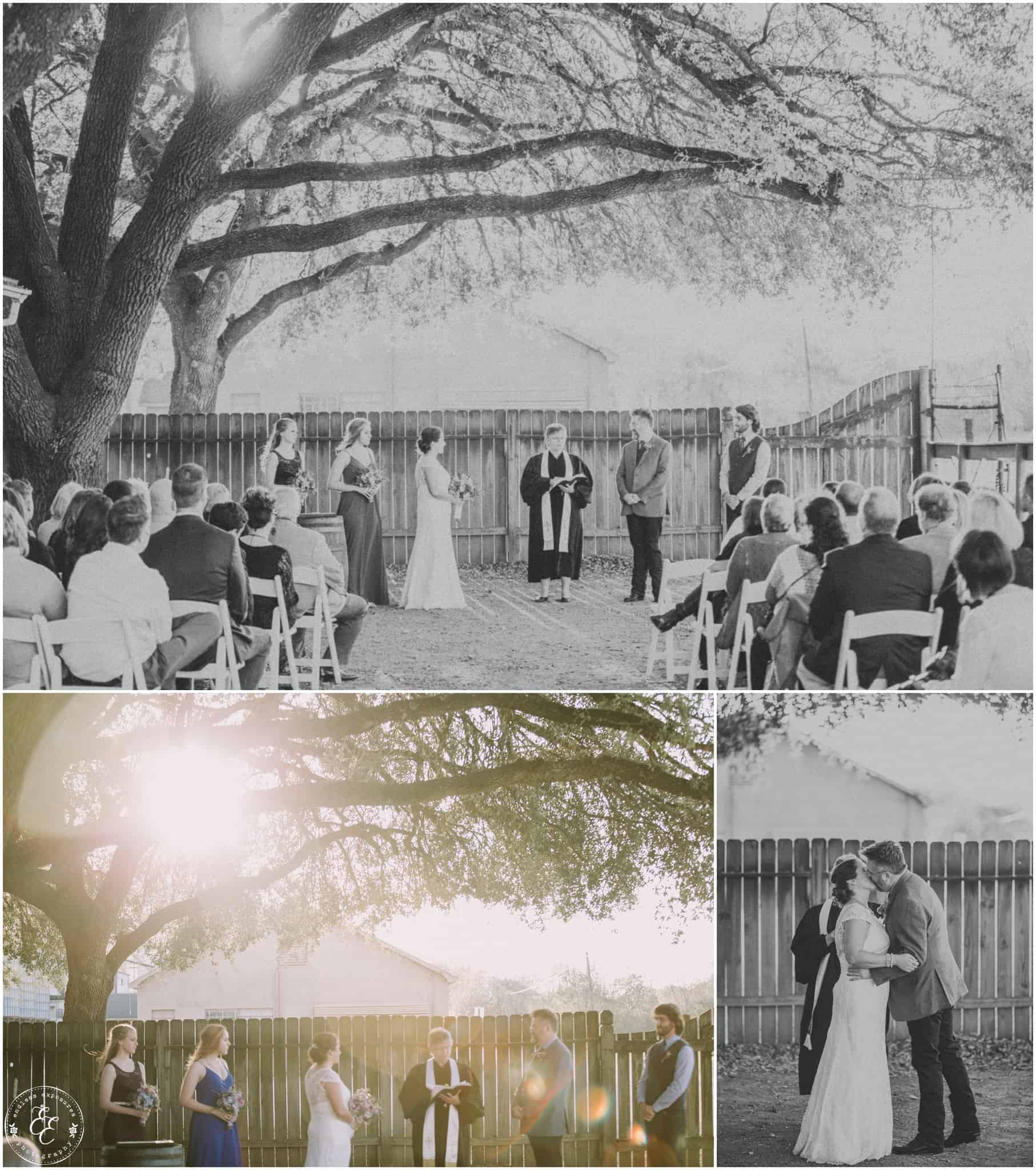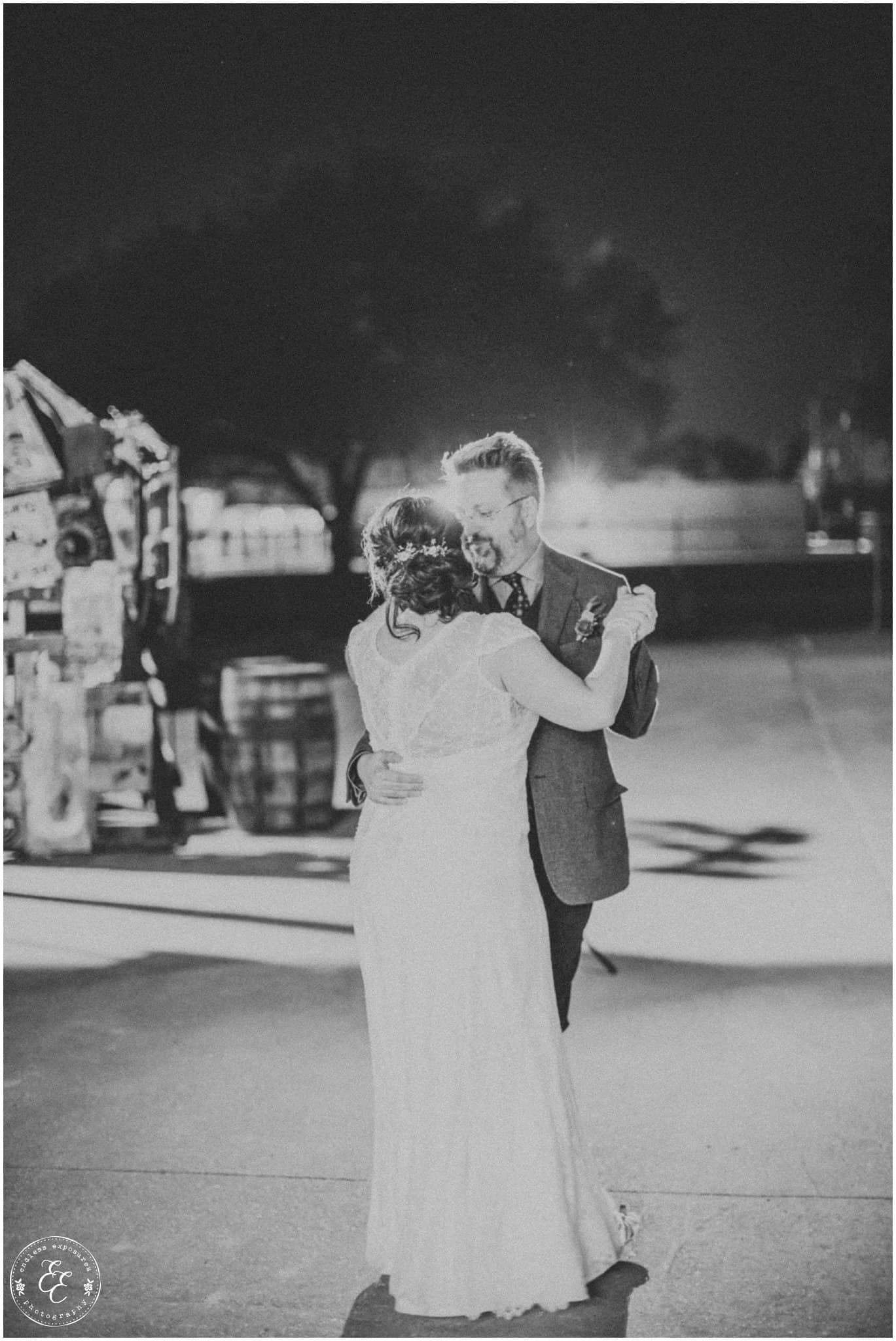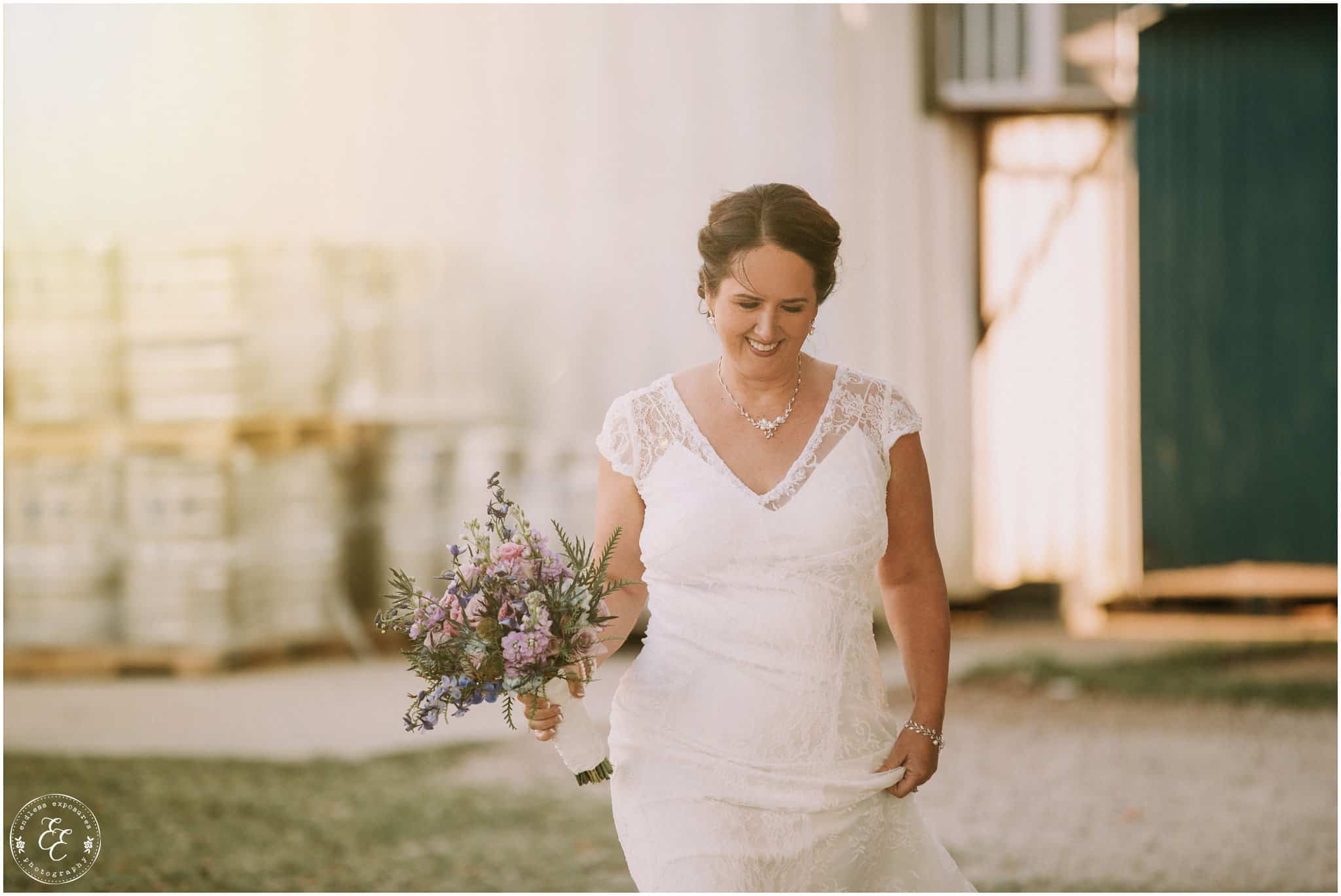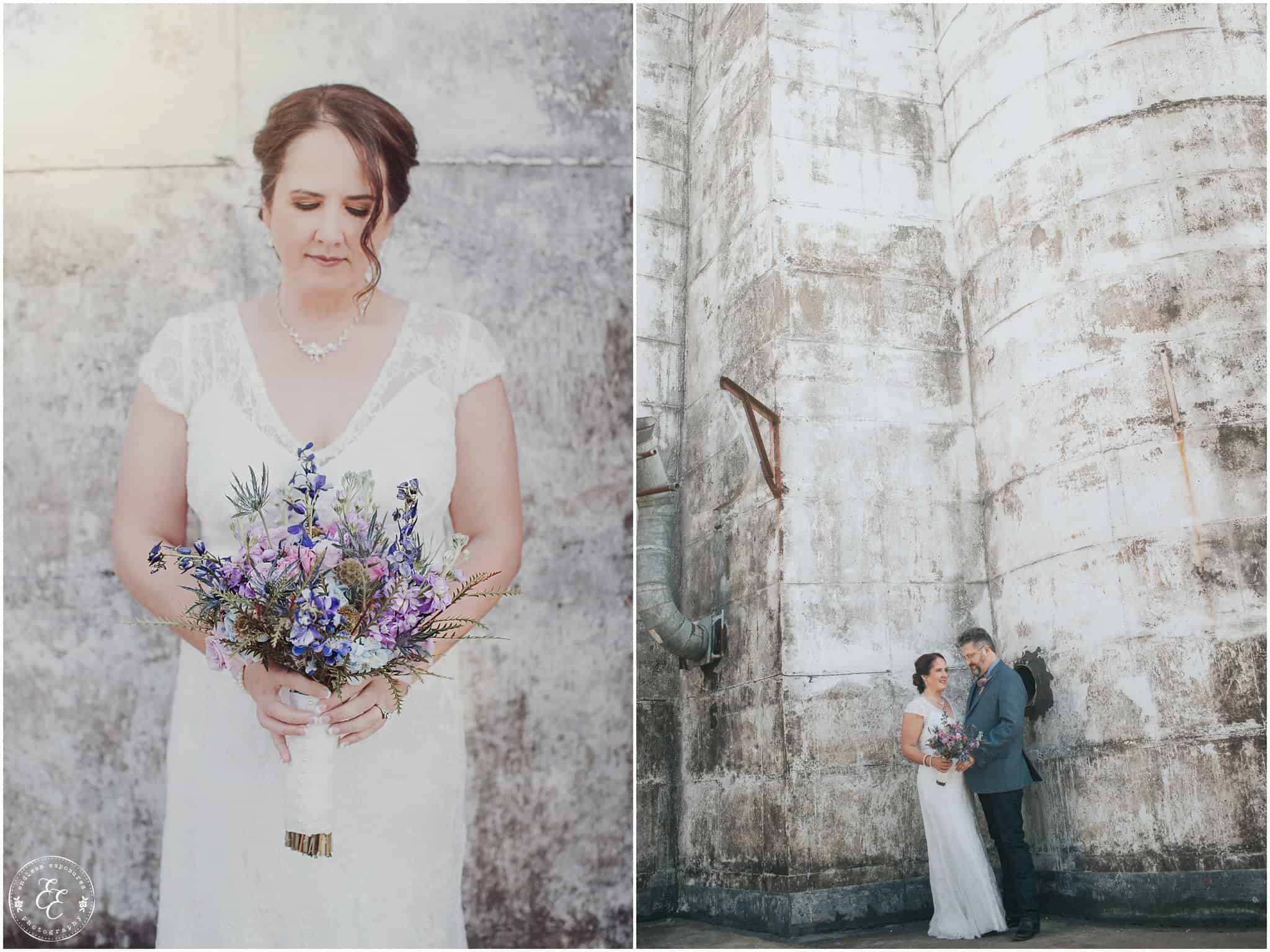 I’m so excited to get to blog this brewery wedding at No Label Brewery in Katy, TX! A super unique venue with some sweet elements. I love absolutely everything about Tami and Sam’s wedding! It was recently published over on 7 Centerpieces ! A Splendid Event of course rocked the coordinating and event design “splendidly” so.. Their food was served by Ripe, a local vegan food truck with lavender lemonade and cucumber mint drinks as well as tofu tacos and more (they were delicious, we got to try!). We loved the bluebonnets, lavender, and other assortment of wild flowers incorporated throughout her centerpieces and bouquets that were done by the fantastic Blythe & Co. Wedding and Event Floral Designs. A vintage polaroid camera for guests to take photos of and have them instantly printed to sign their name next to was set out, as well as a stand of cupcakes and endless on tap beer throughout the night for guests to enjoy as they wished. The venue was surrounded by silos, a big oak tree where Tami and Sam exchanged their vows with their family and friends, and a beautiful sunset behind the patio where everyone hung out for food and drinks, strung with vintage edison light bulbs through and exposed ceilings. The brewery was the perfect urban and hip place to say I do and let love brew! The stars shined bright and we even captured the Orion’s belt constellation in some of the shots! Enjoy some of my favorites from their special day!