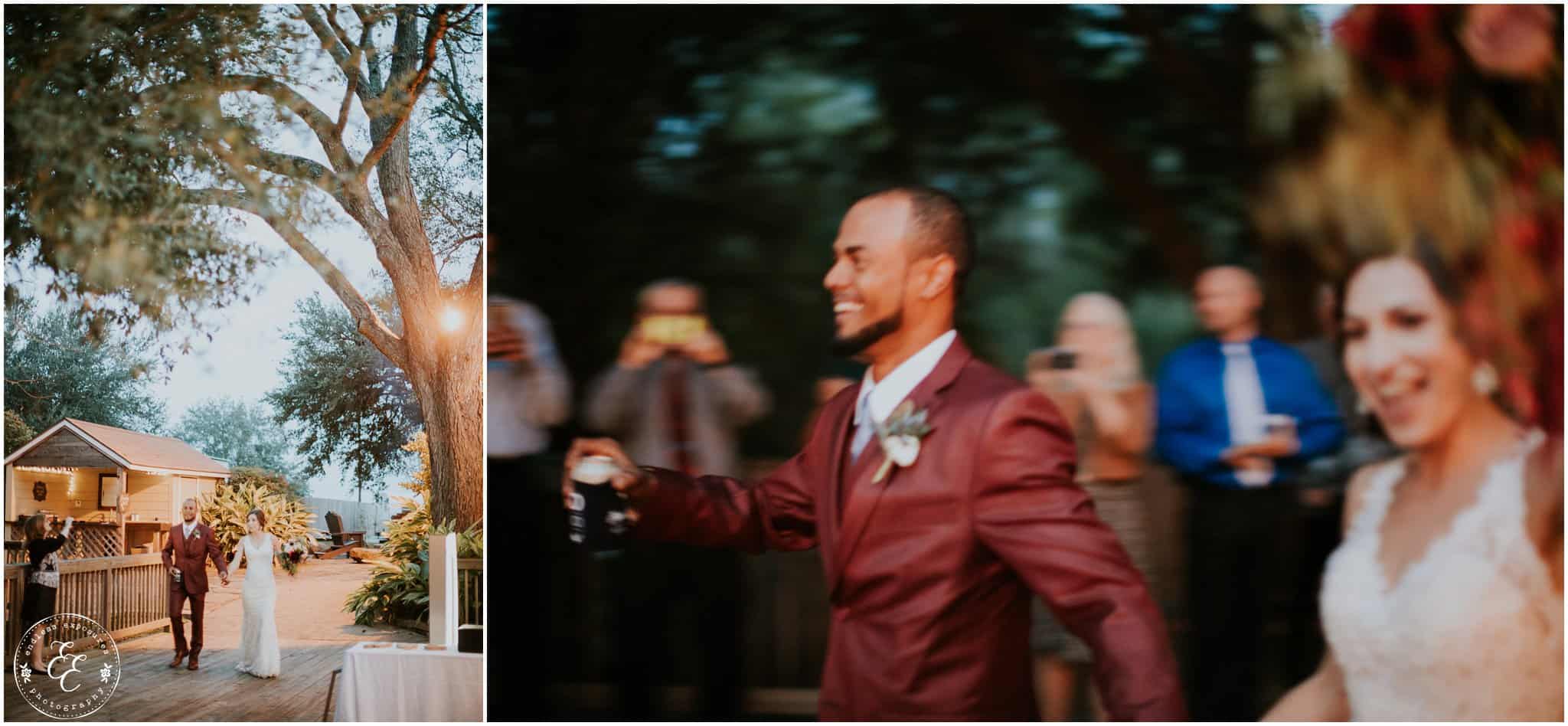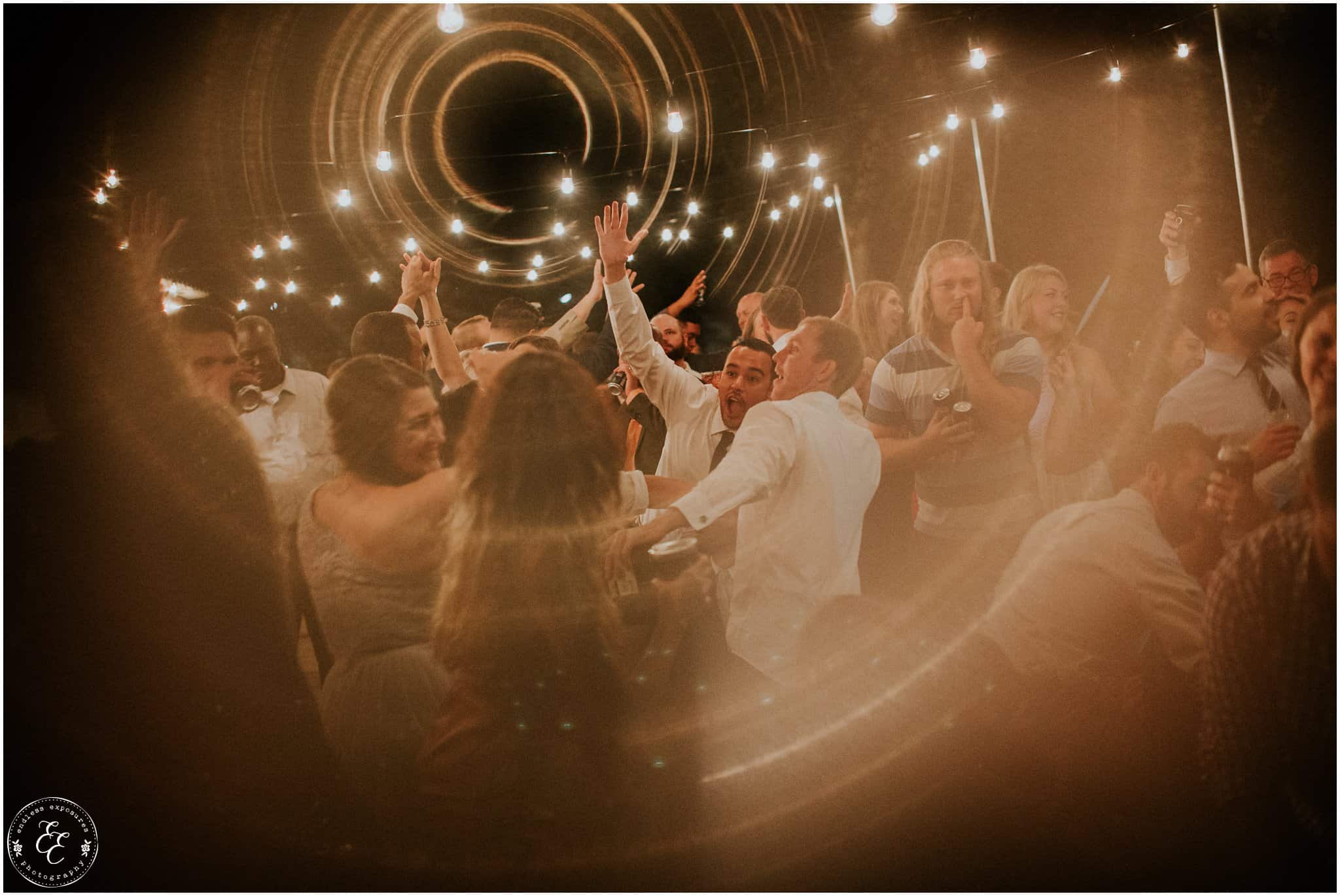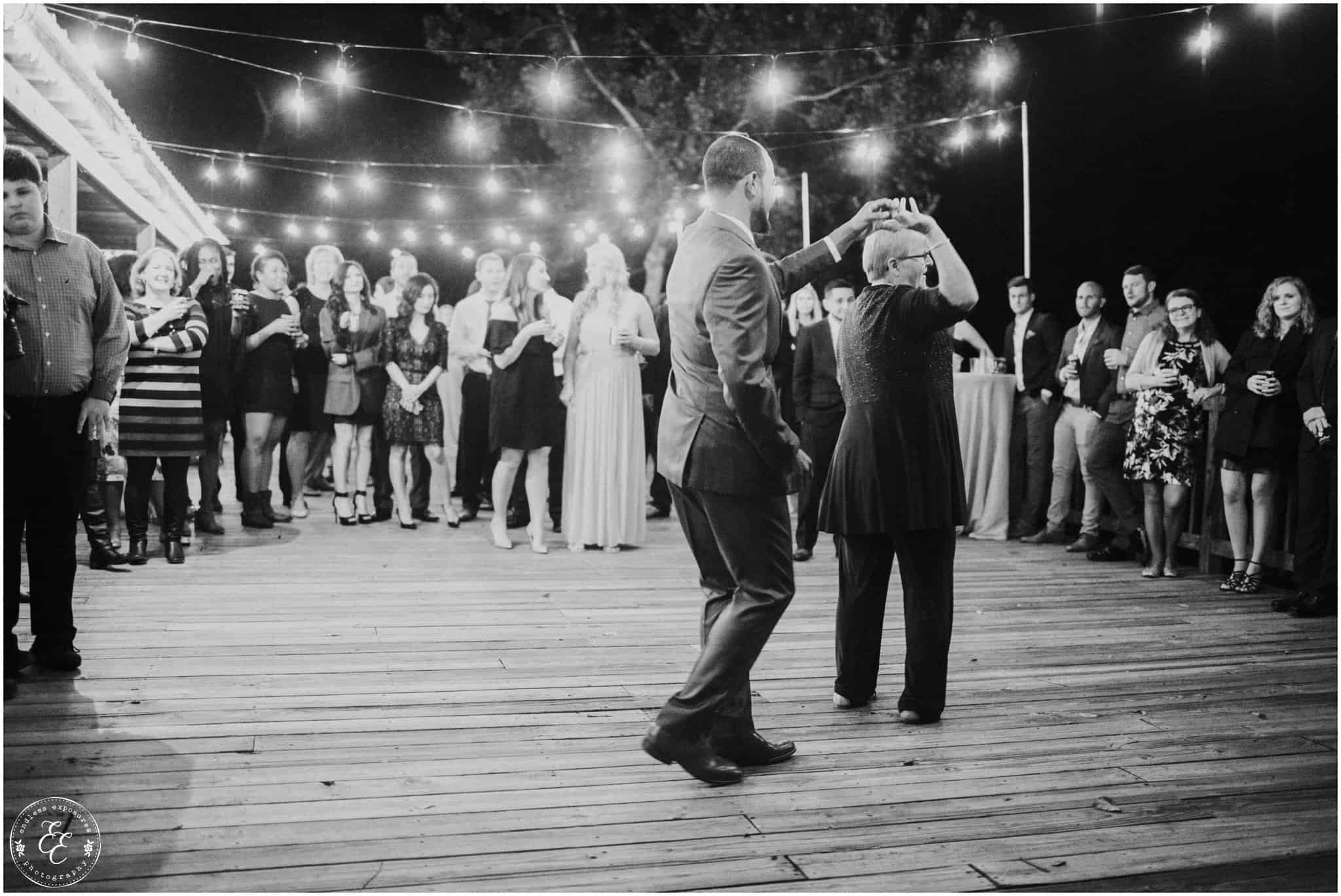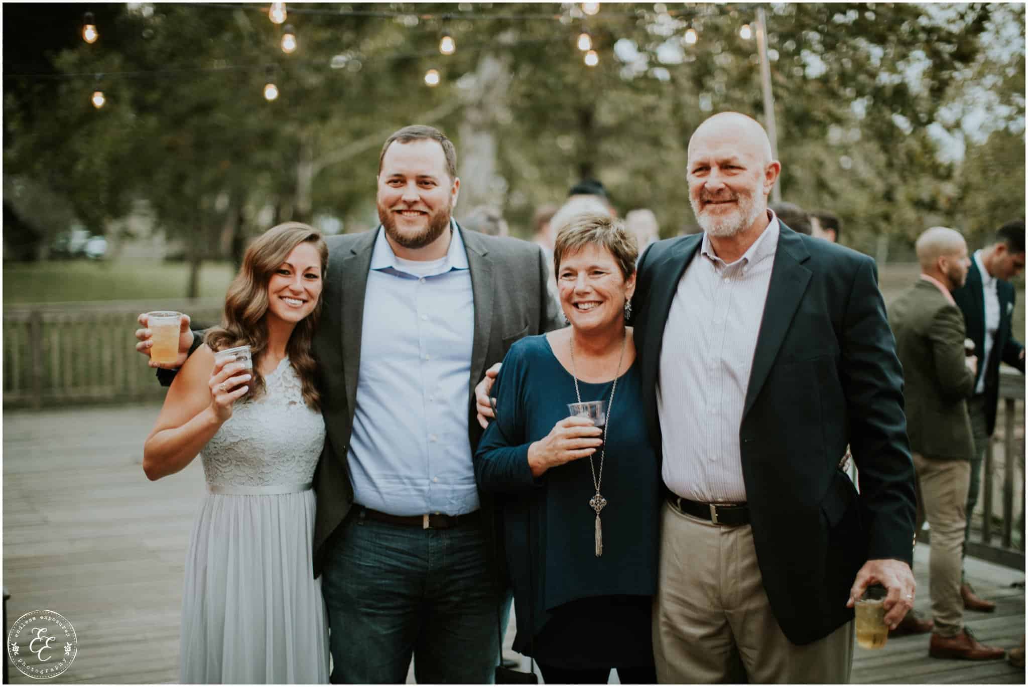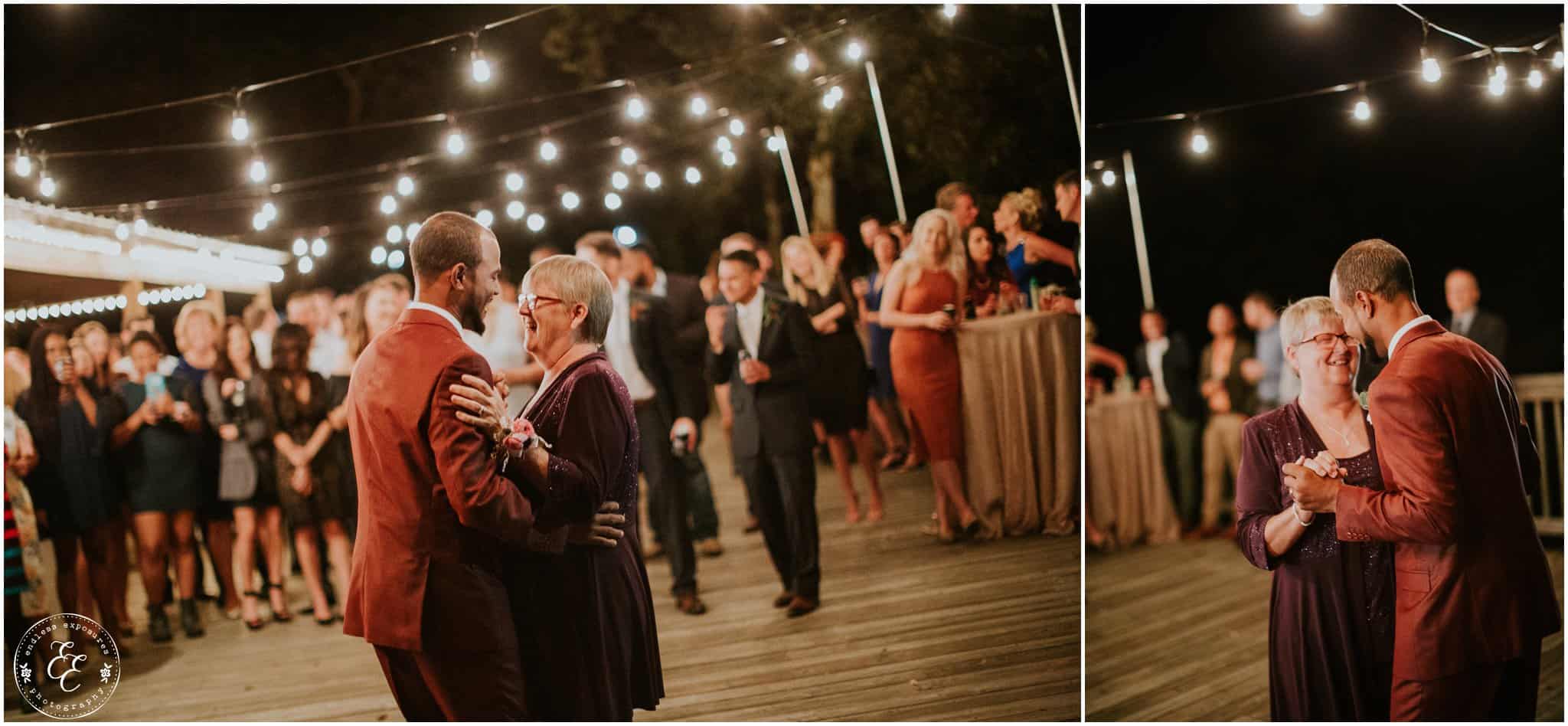 The ladies got ready in one house, while the groomsmen were getting ready in the house across from it (even more bedrooms for people to spend the night there!). So, bride can stay tucked away comfortably and even take photos outside without being noticed by the guys side! It’s so convenient! There was also an outdoor setup/dining area for guests to have dinner and cocktails — with a deck outside where most of the guests like to hang out and enjoy nature under the patio lights and stars. You can take a walk across the bridge to connect to the on-water gazebo for some beautiful night-couple shots. I loved the opportunity to steal Miranda + Paul away during the middle of the reception to get some fun shots down there while guests were just hanging out and enjoying the evening!