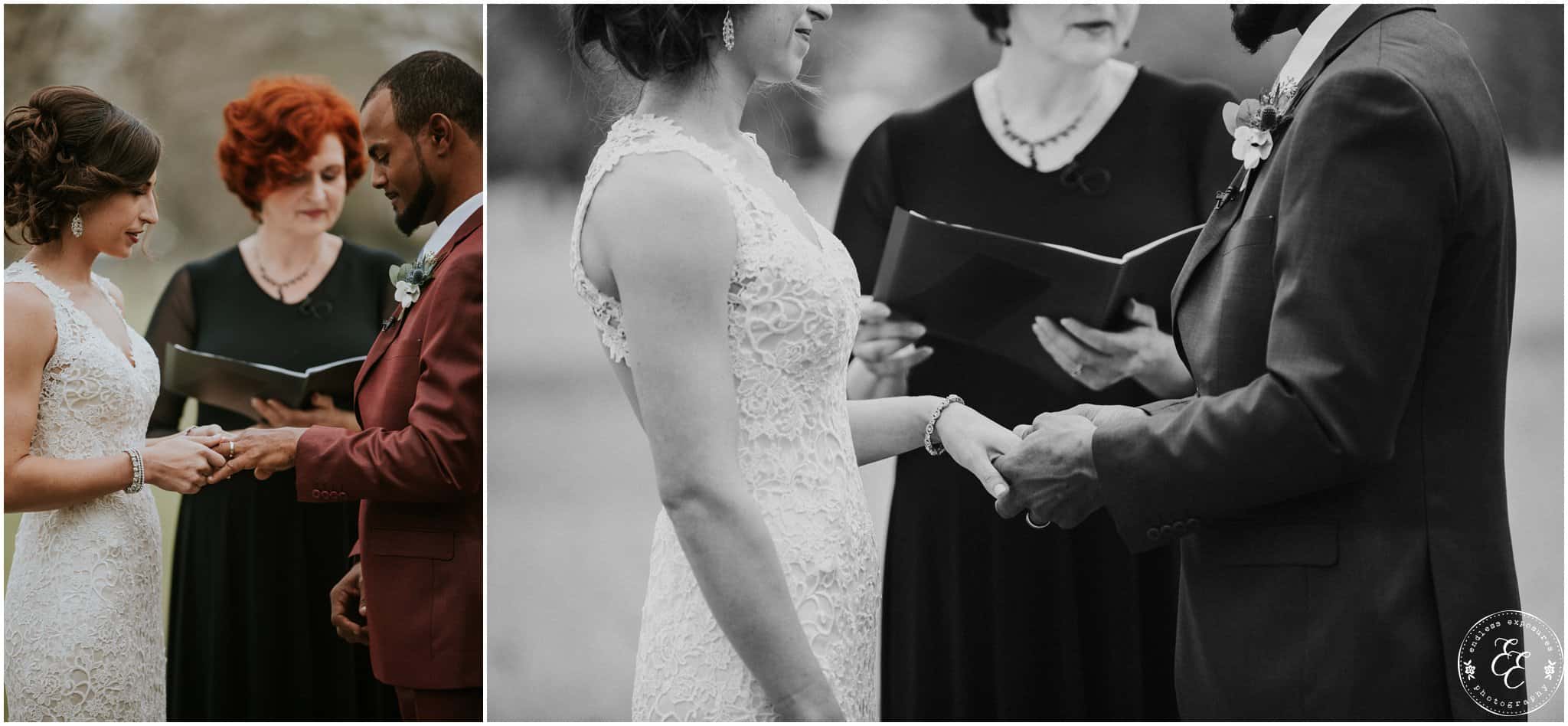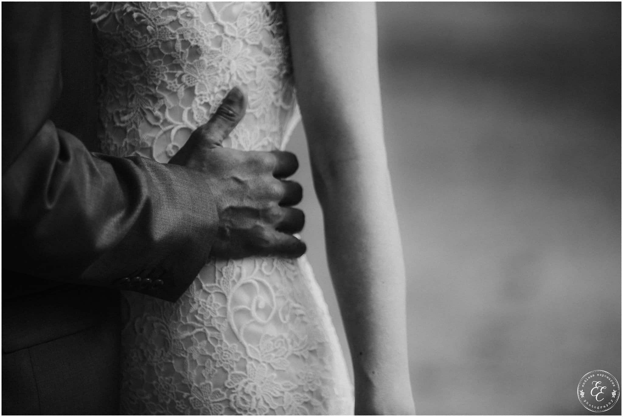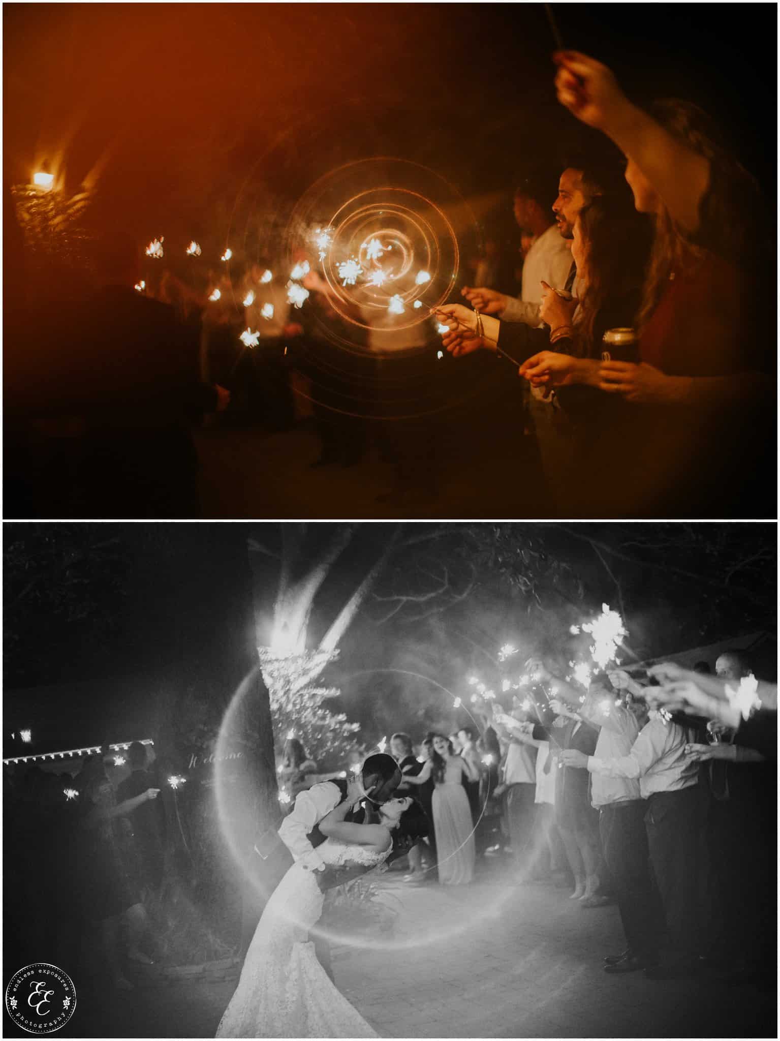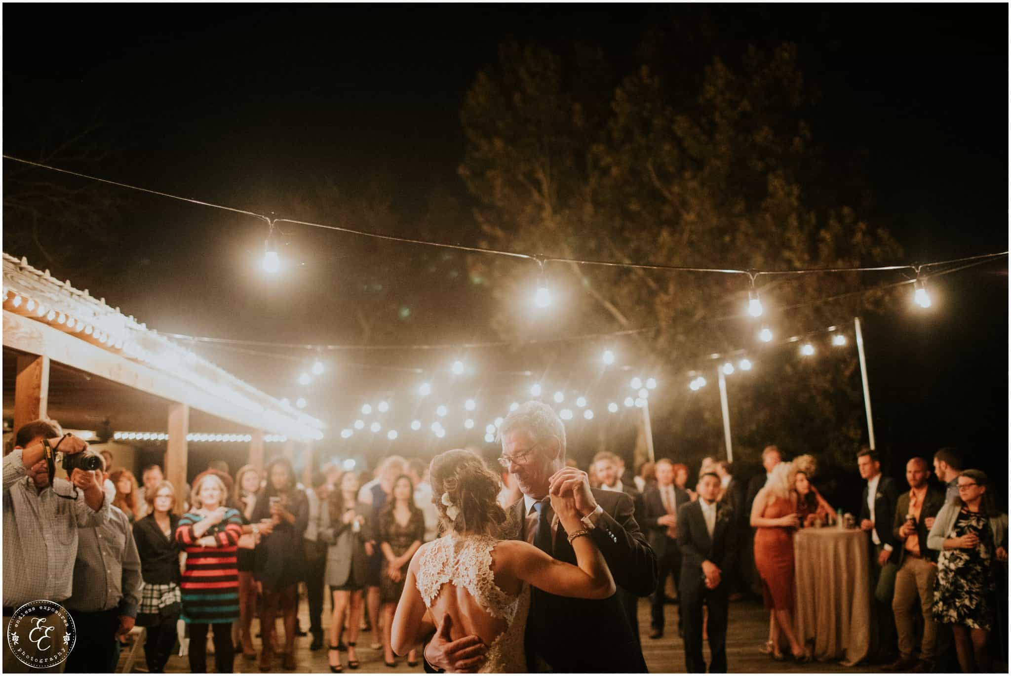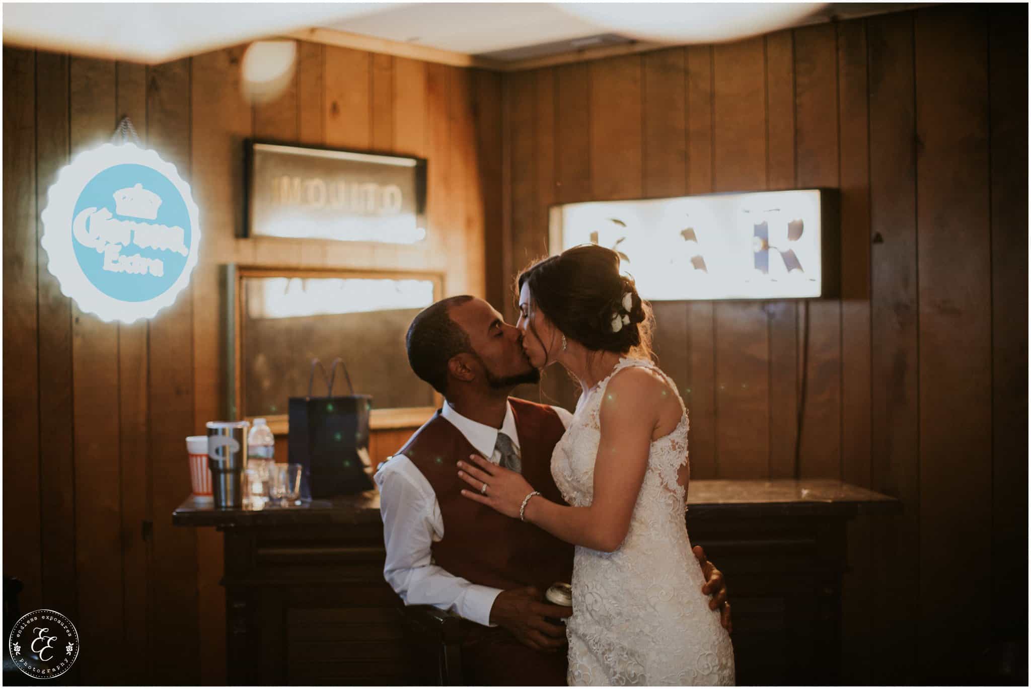 The ladies got ready in one house, while the groomsmen were getting ready in the house across from it (even more bedrooms for people to spend the night there!). So, bride can stay tucked away comfortably and even take photos outside without being noticed by the guys side! It’s so convenient! There was also an outdoor setup/dining area for guests to have dinner and cocktails — with a deck outside where most of the guests like to hang out and enjoy nature under the patio lights and stars. You can take a walk across the bridge to connect to the on-water gazebo for some beautiful night-couple shots. I loved the opportunity to steal Miranda + Paul away during the middle of the reception to get some fun shots down there while guests were just hanging out and enjoying the evening!