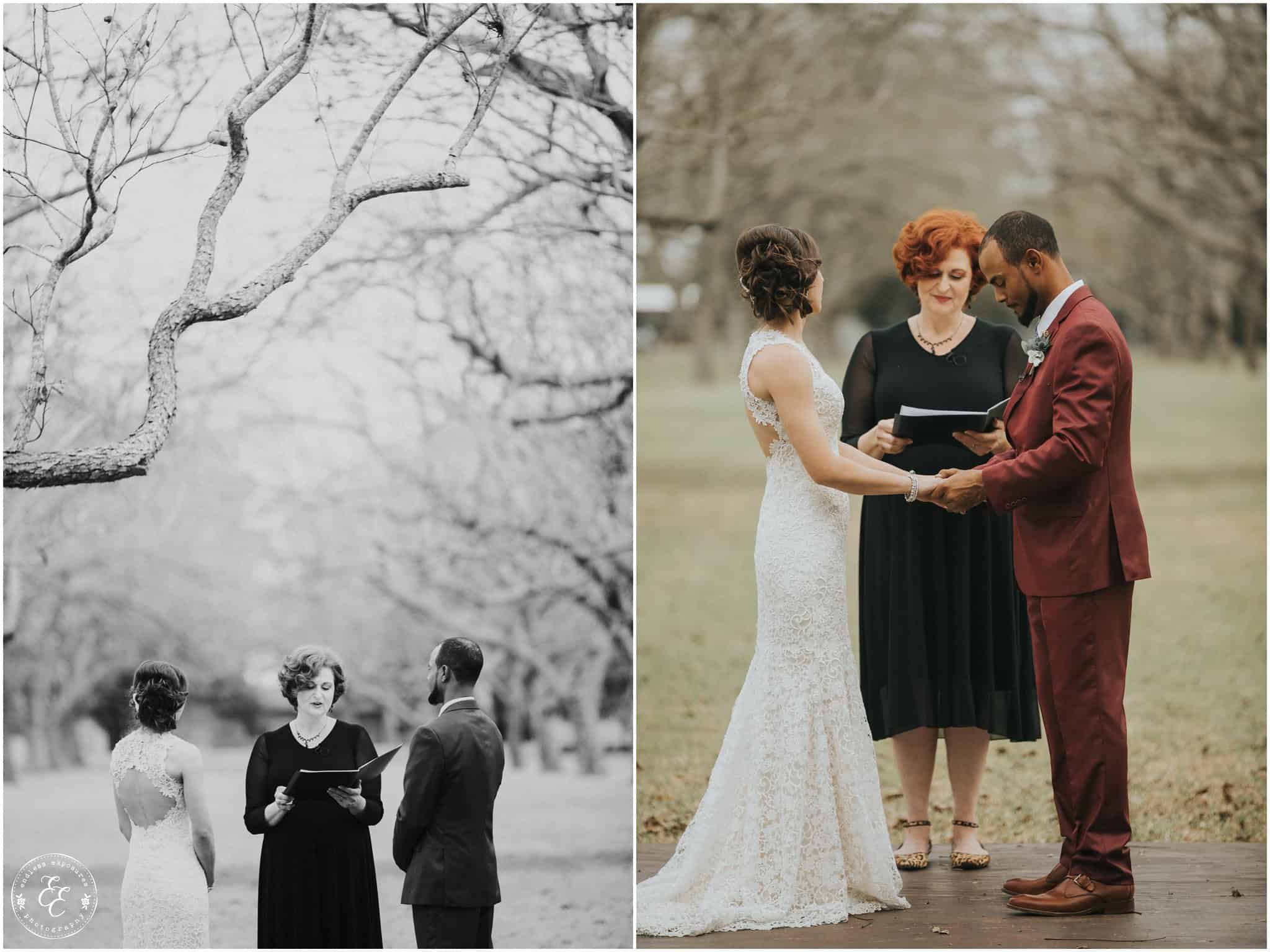 Where do I even begin.. Every. single. detail. of this wedding is pure perfection! A wonderful wedding coordinated by the fabulous A Splendid Event . Miranda and Paul got married last year at The Orchard at Caney Creek and it was a winter-dream! They had the entire property for themselves — a house to get ready in with a kitchen to enjoy snacks and just hang out (even, sleep!) and their ceremony under the trees.. and a reception on the deck overlooking the water!