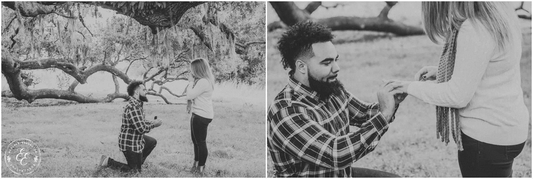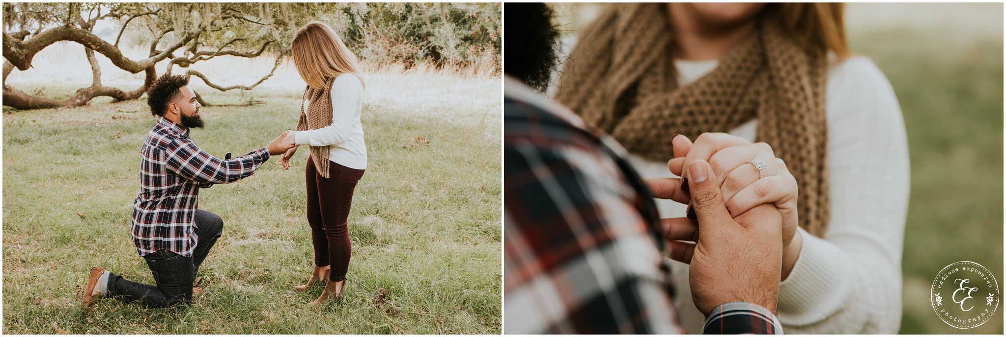 When Joseph first emailed me, I was so excited because it had been awhile since I had the opportunity to photograph a surprise proposal. We planned it out over a few weeks and when the day came, a few of Casea’s friends and family were there hiding in a nearby parking lot. We met Casea + Joseph and walked over to one of my favorite tree’s in Houston to photograph — and he popped the question under the beautiful mossy oak. We did this mini-session in 30 minutes and it was so fun! I couldn’t ask for better people to work with.