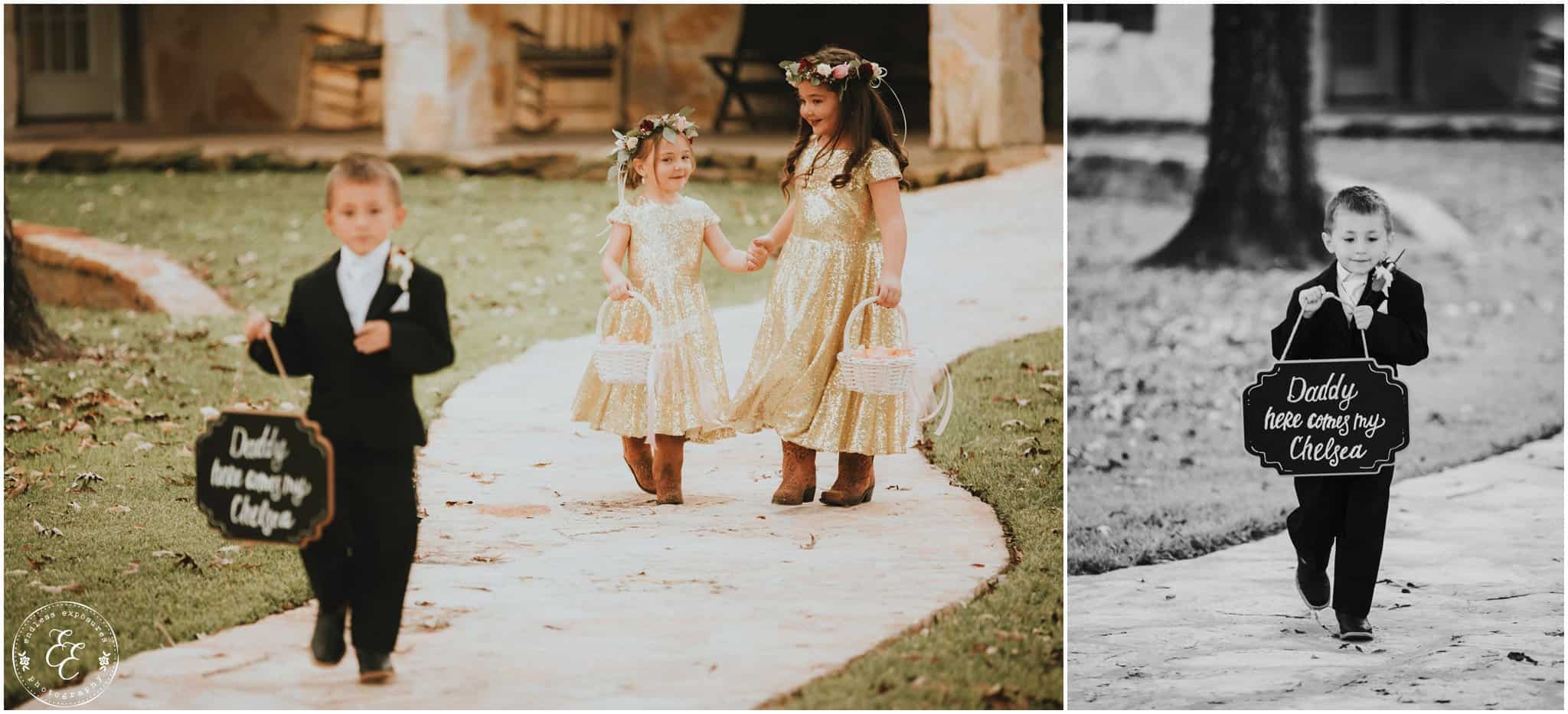This sign is so sweet! The flower girls had the golden glitter color incorporated in their wedding party, I can’t even with all of the perfect coordinating colors. Talk about planned out to the T!
