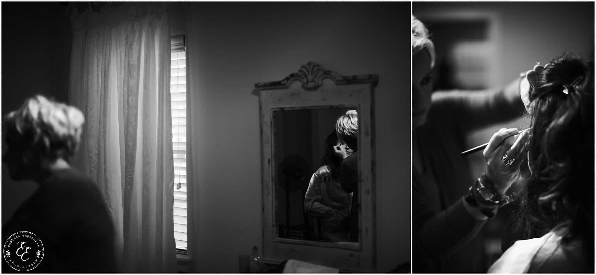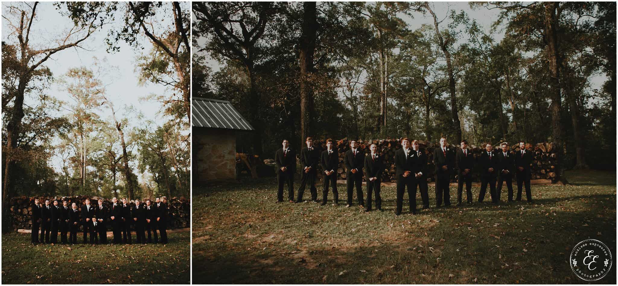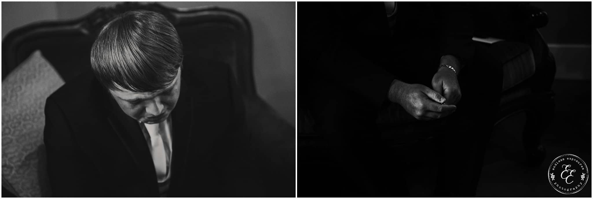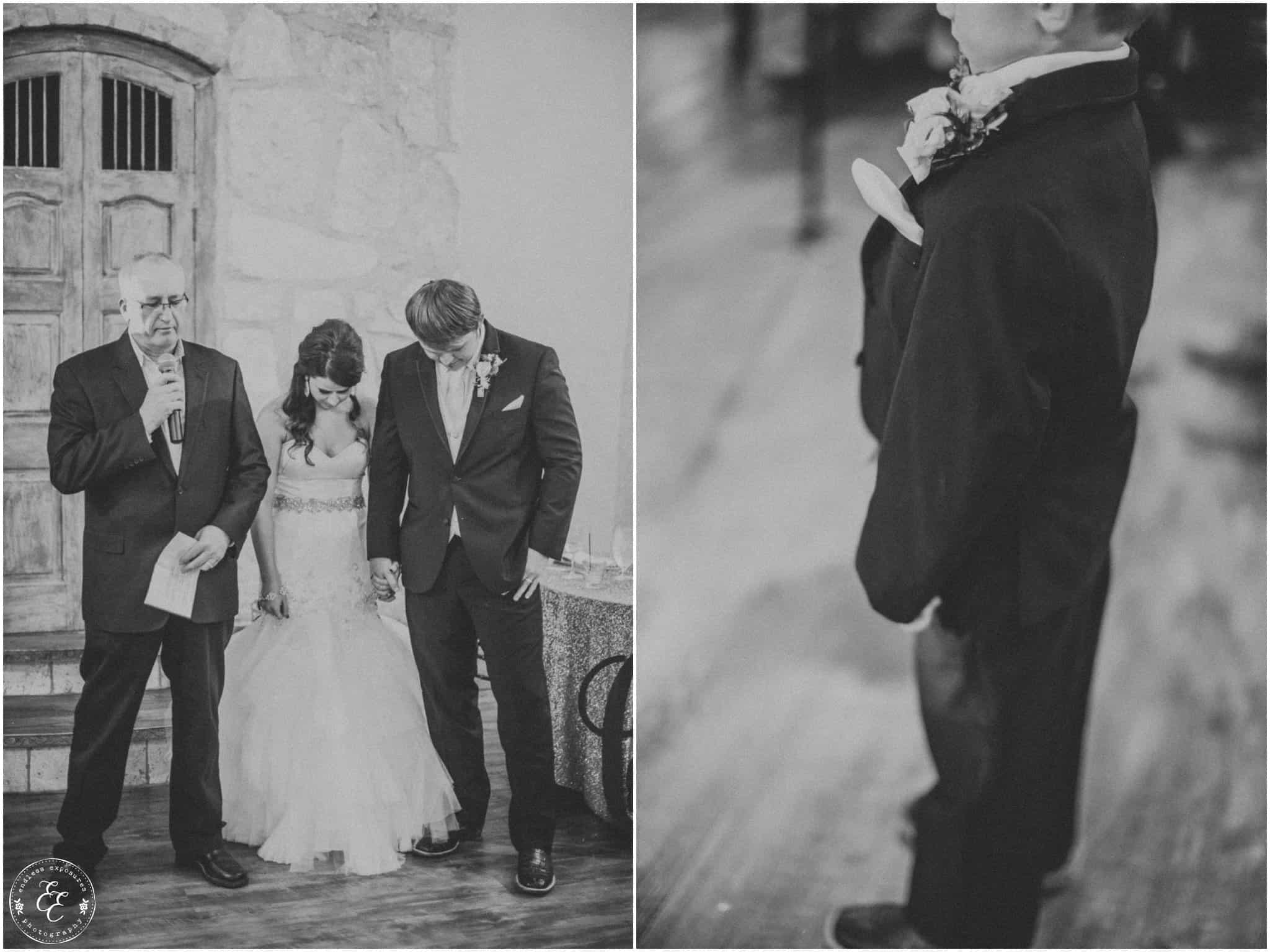 We love shooting at Balmorhea events. The girls had an entire suite to themselves to get ready in front of beautiful vanities in a white laced bridal room. They had the whole kitchen to themselves too and several snacks and fun personalized cookies to snack on while they were getting pampered and beautified. Flowers from Carters Florist Conroe arrived and we were able to photograph them around the venue and they were CRAZY STUNNING. So elaborate and all over the venue. Chelsea’s bouquet was huge and overflowed so gracefully. The flowers had to have been my favorite part (but the gold glitter is really really close). The guys got ready in the balcony above and there are so many cool angles and lighting up there for interesting grooms shots. I love some of the emotional behind-the-scenes shots we captured during this wedding. We turned a lot of them into black and white’s to intensify the feeling in those photos.