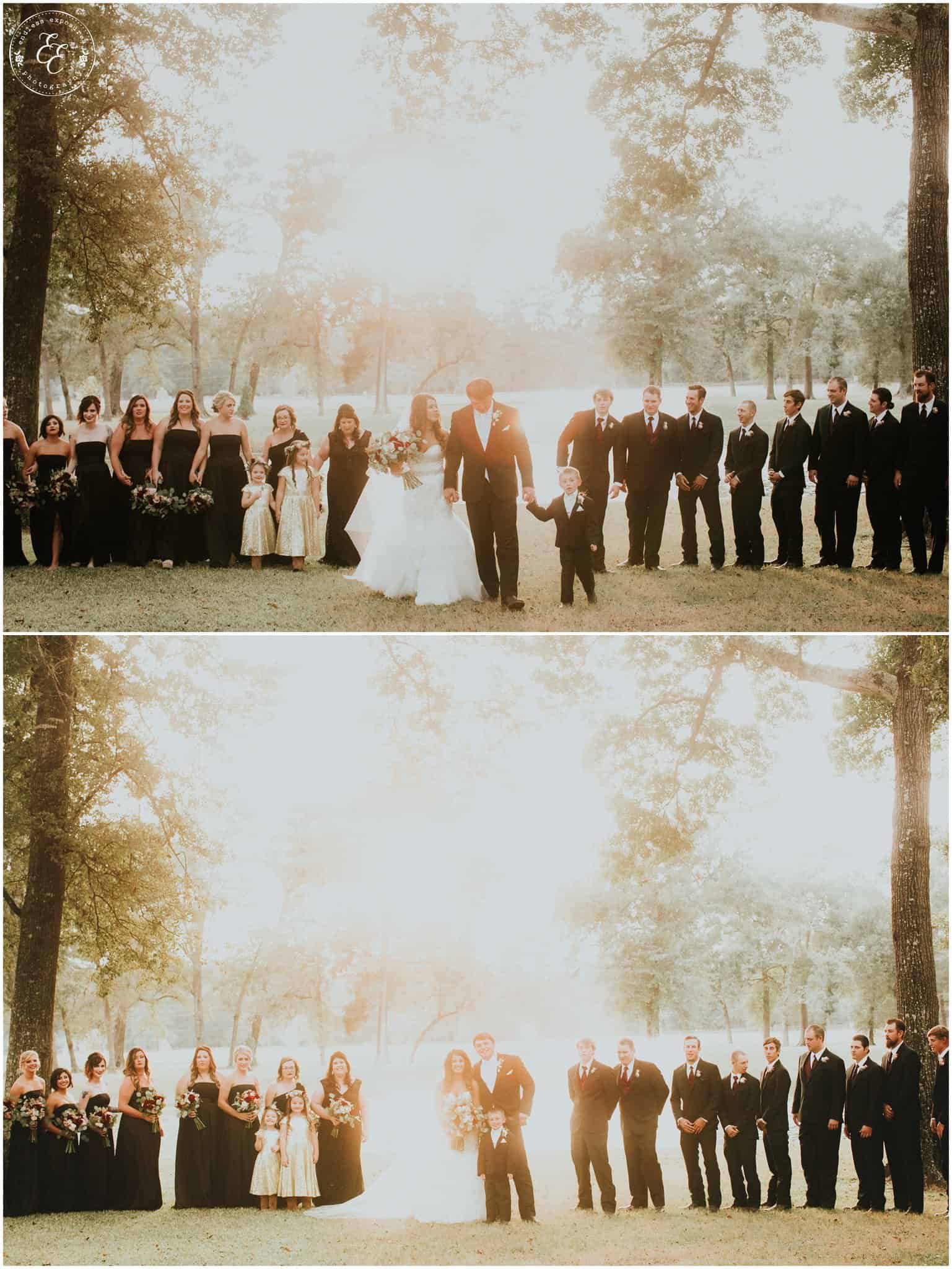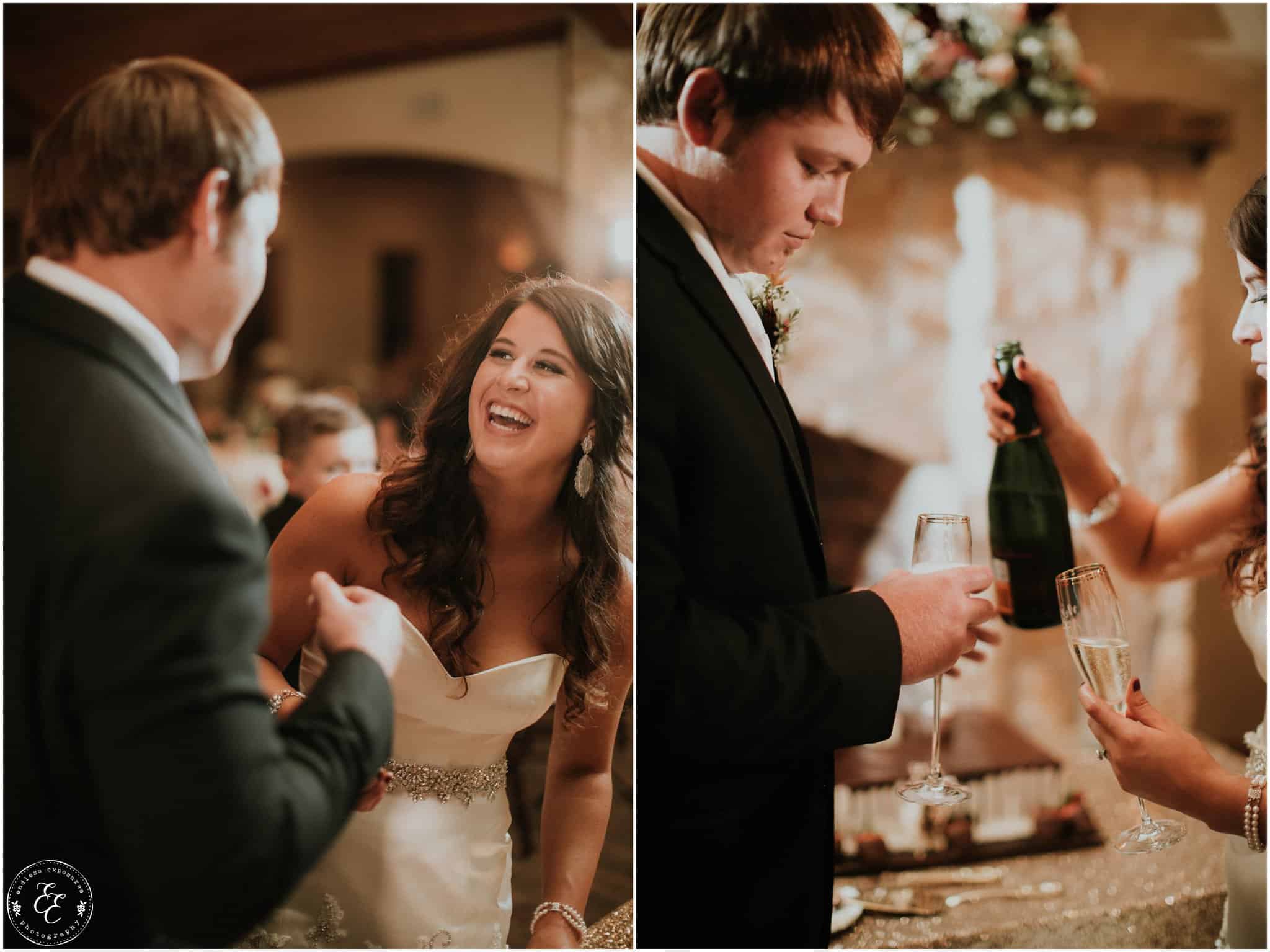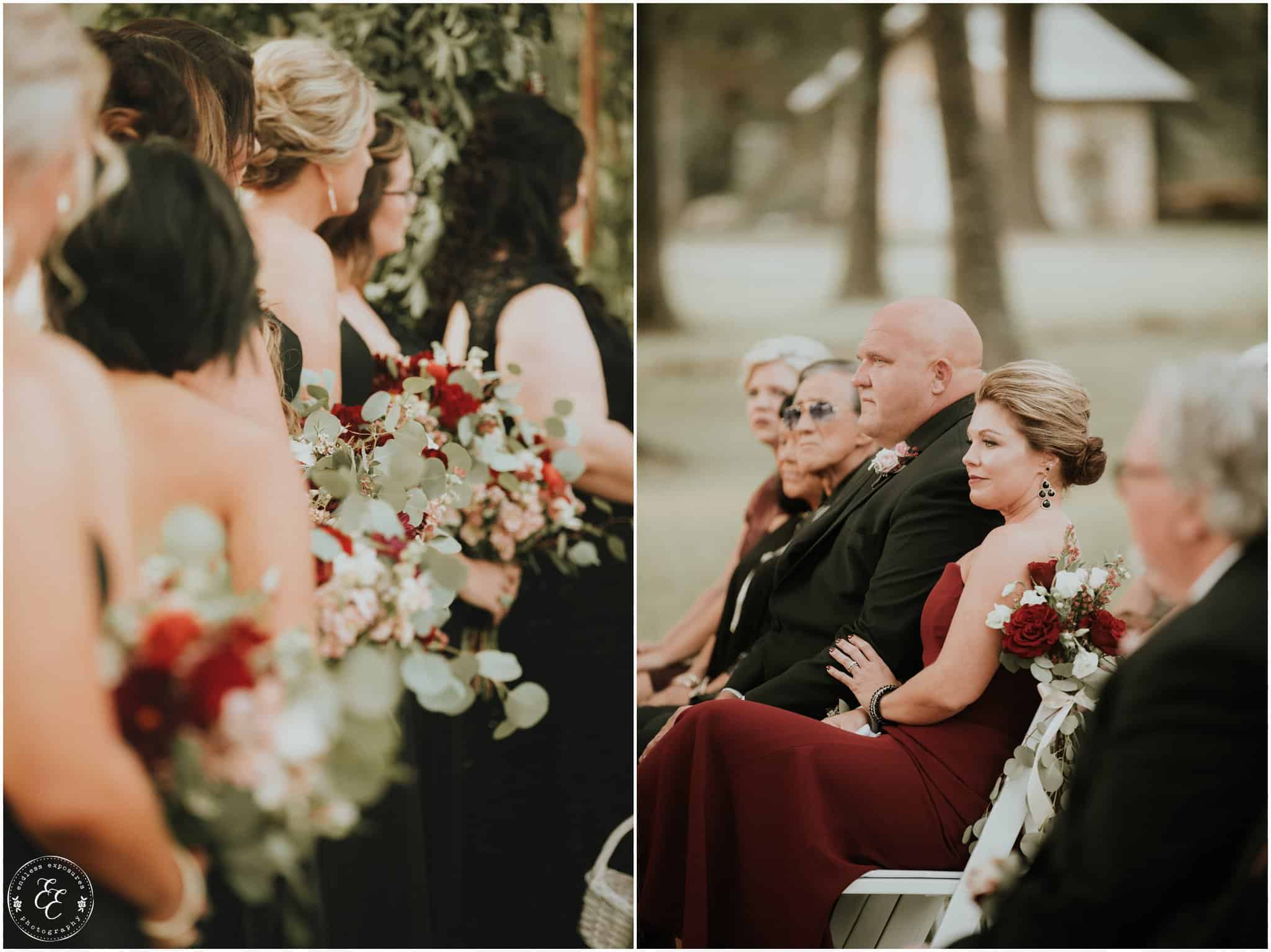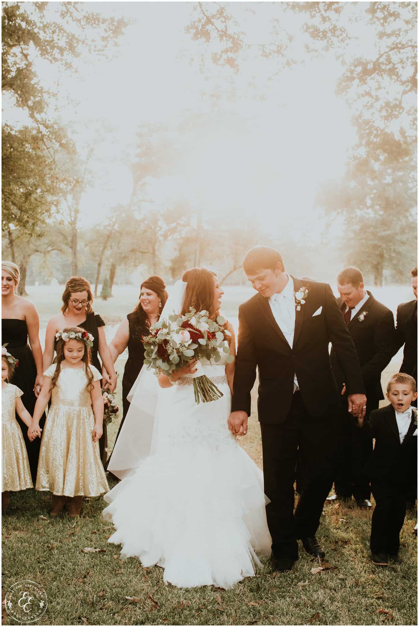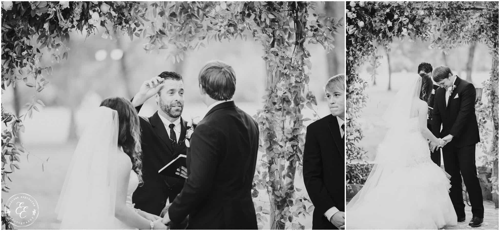 We love shooting at Balmorhea events. The girls had an entire suite to themselves to get ready in front of beautiful vanities in a white laced bridal room. They had the whole kitchen to themselves too and several snacks and fun personalized cookies to snack on while they were getting pampered and beautified. Flowers from Carters Florist Conroe arrived and we were able to photograph them around the venue and they were CRAZY STUNNING. So elaborate and all over the venue. Chelsea’s bouquet was huge and overflowed so gracefully. The flowers had to have been my favorite part (but the gold glitter is really really close). The guys got ready in the balcony above and there are so many cool angles and lighting up there for interesting grooms shots. I love some of the emotional behind-the-scenes shots we captured during this wedding. We turned a lot of them into black and white’s to intensify the feeling in those photos.