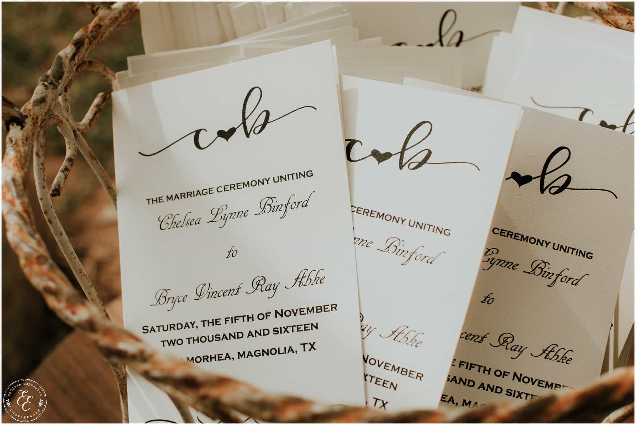 Look at these adorable ceremony programs! They had this same logo on their personalized guest favor coozie’s.