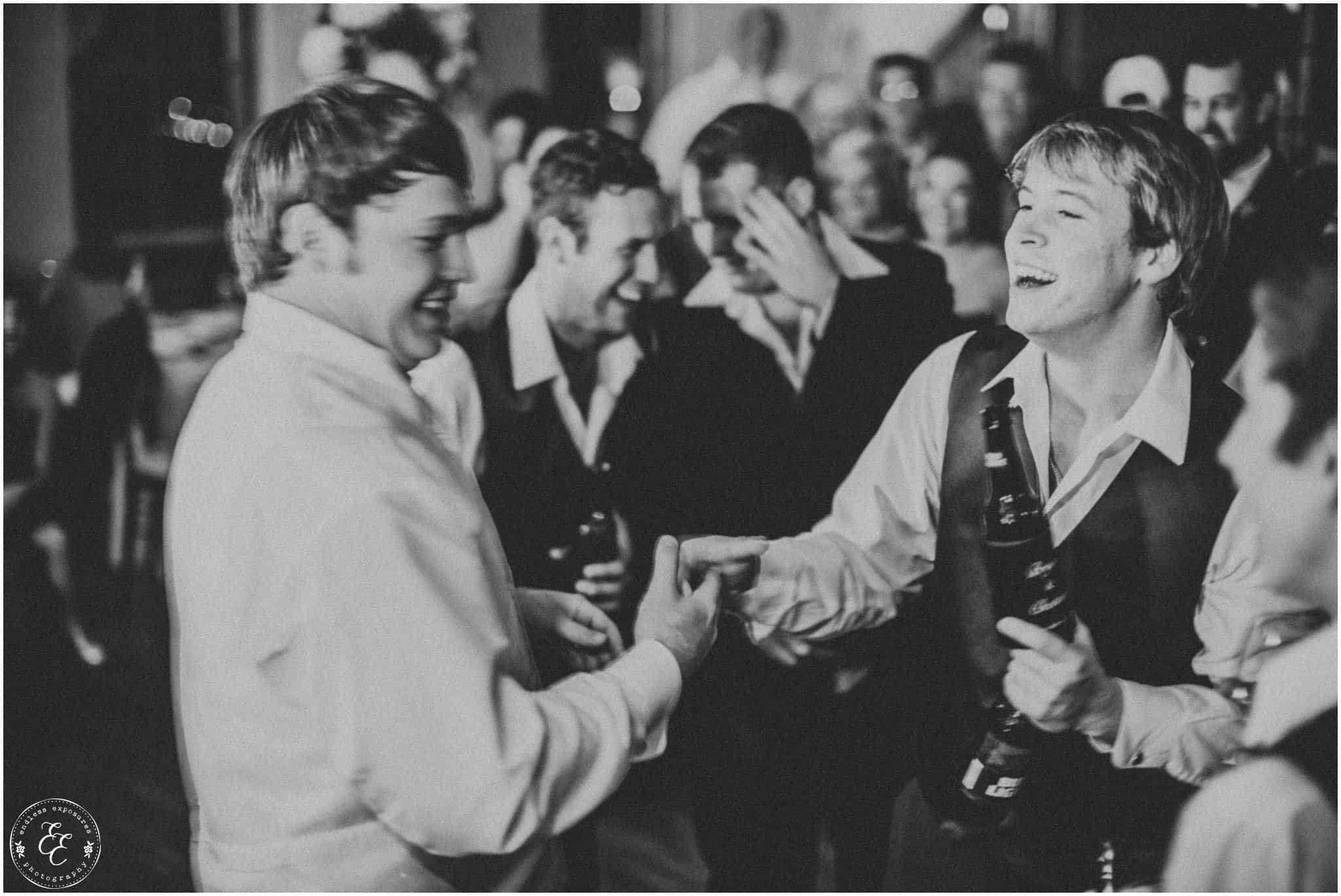 Guests formed a line outside and danced through the venue and back inside in a dance-line-snake. I had fun chasing everyone around.