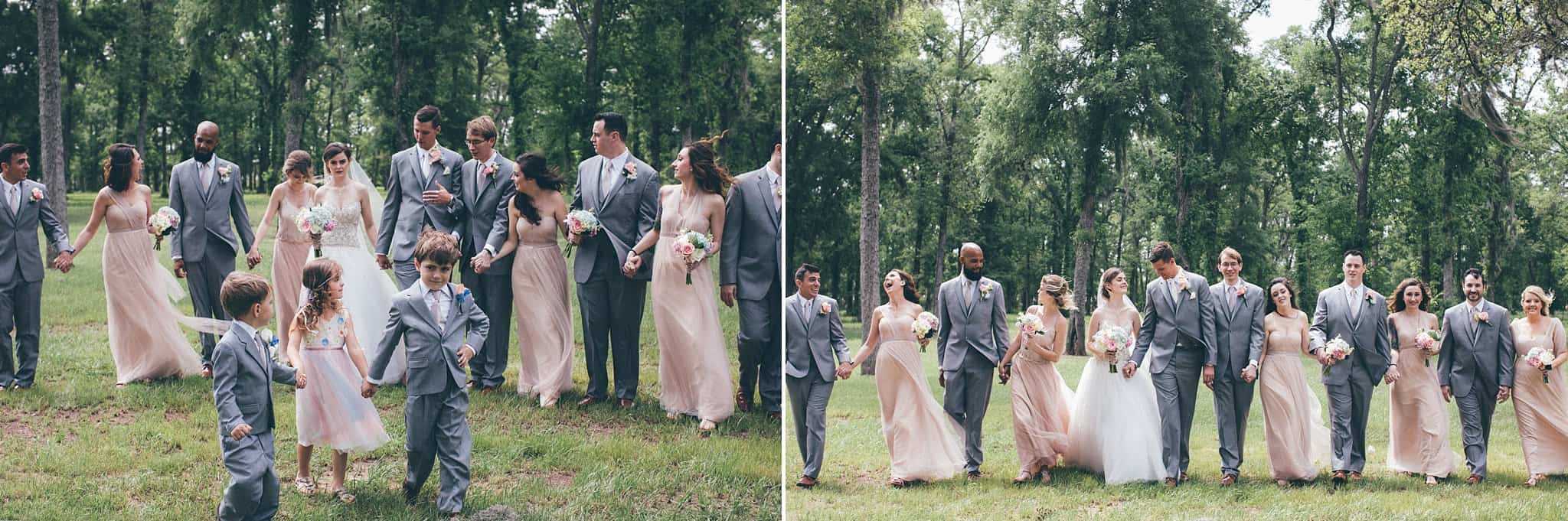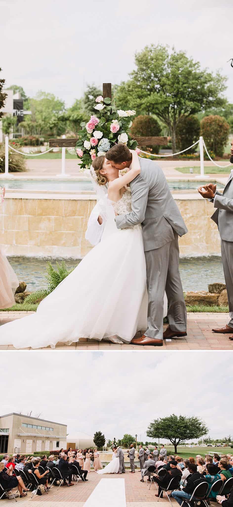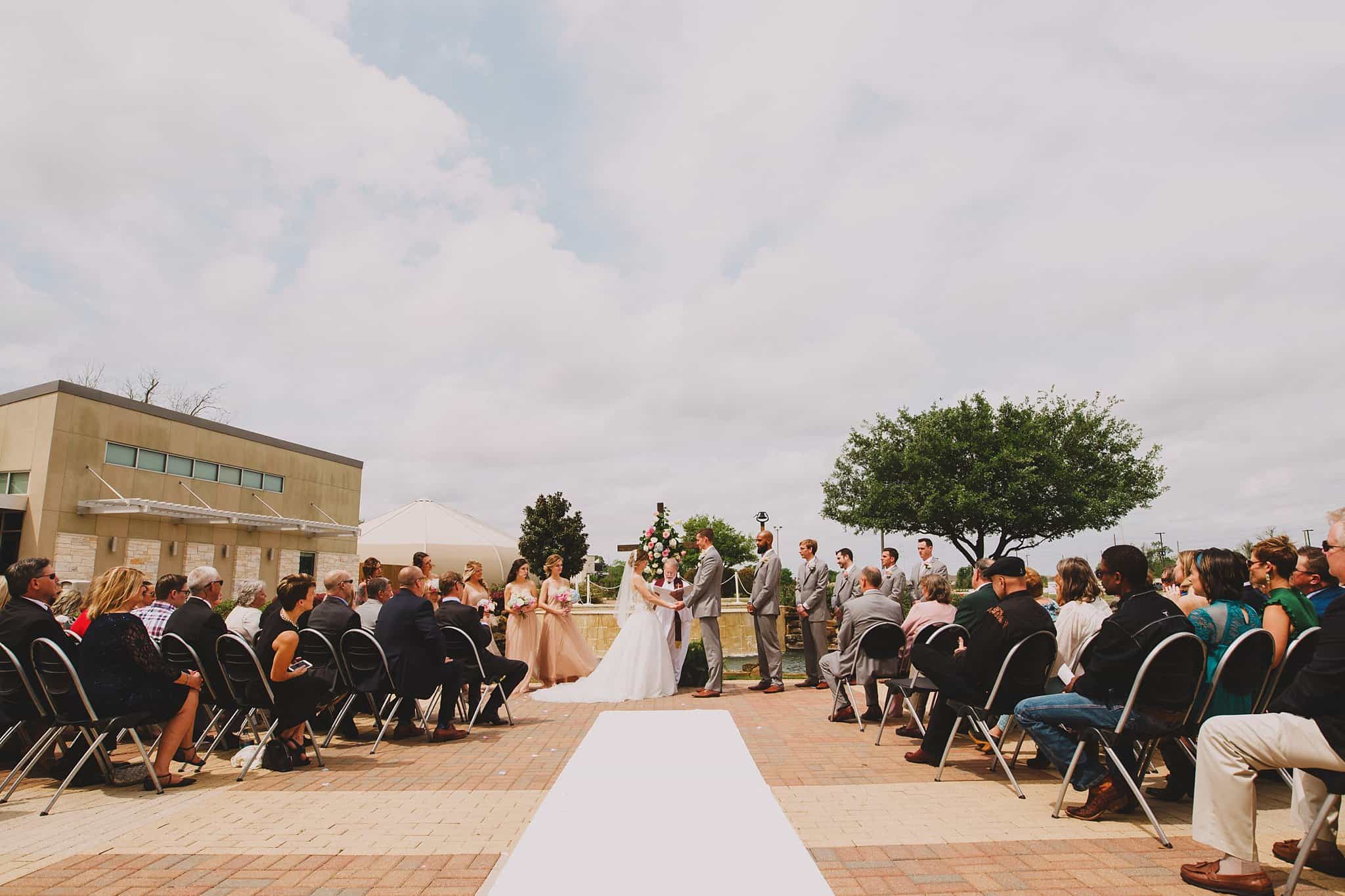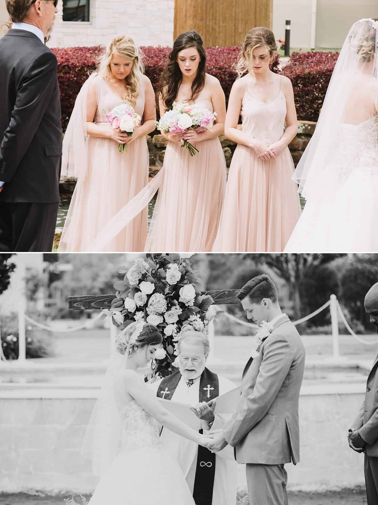 They had their ceremony outside at their church, River Pointe, in Richmond. We did couple and wedding party photos behind the church in a forest area and then headed to their fun + flirty reception at Fort Bend Country Club.