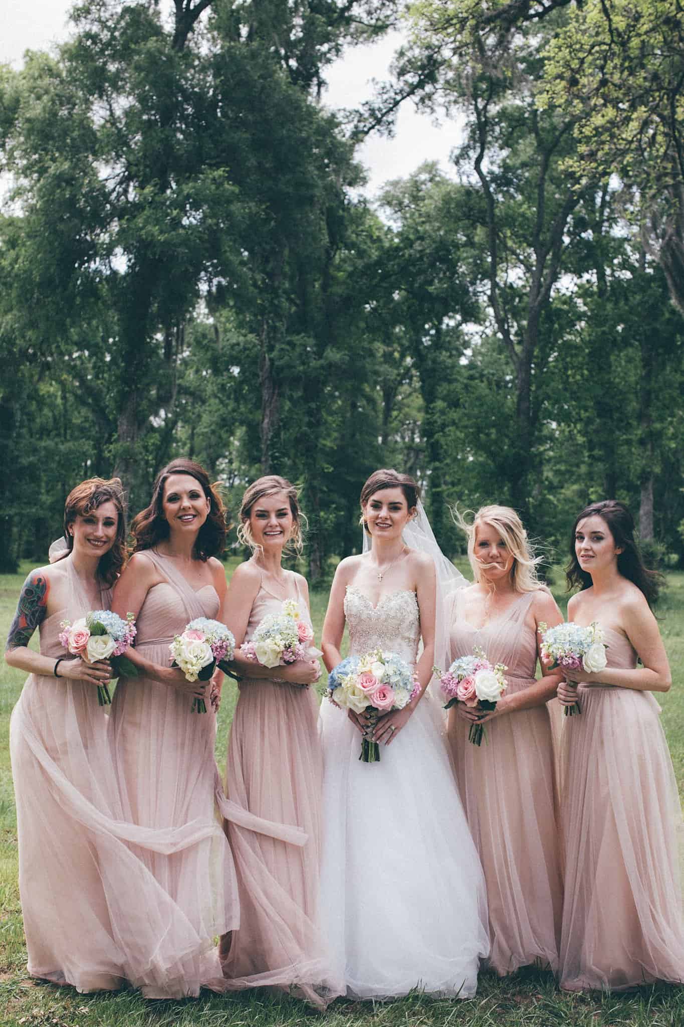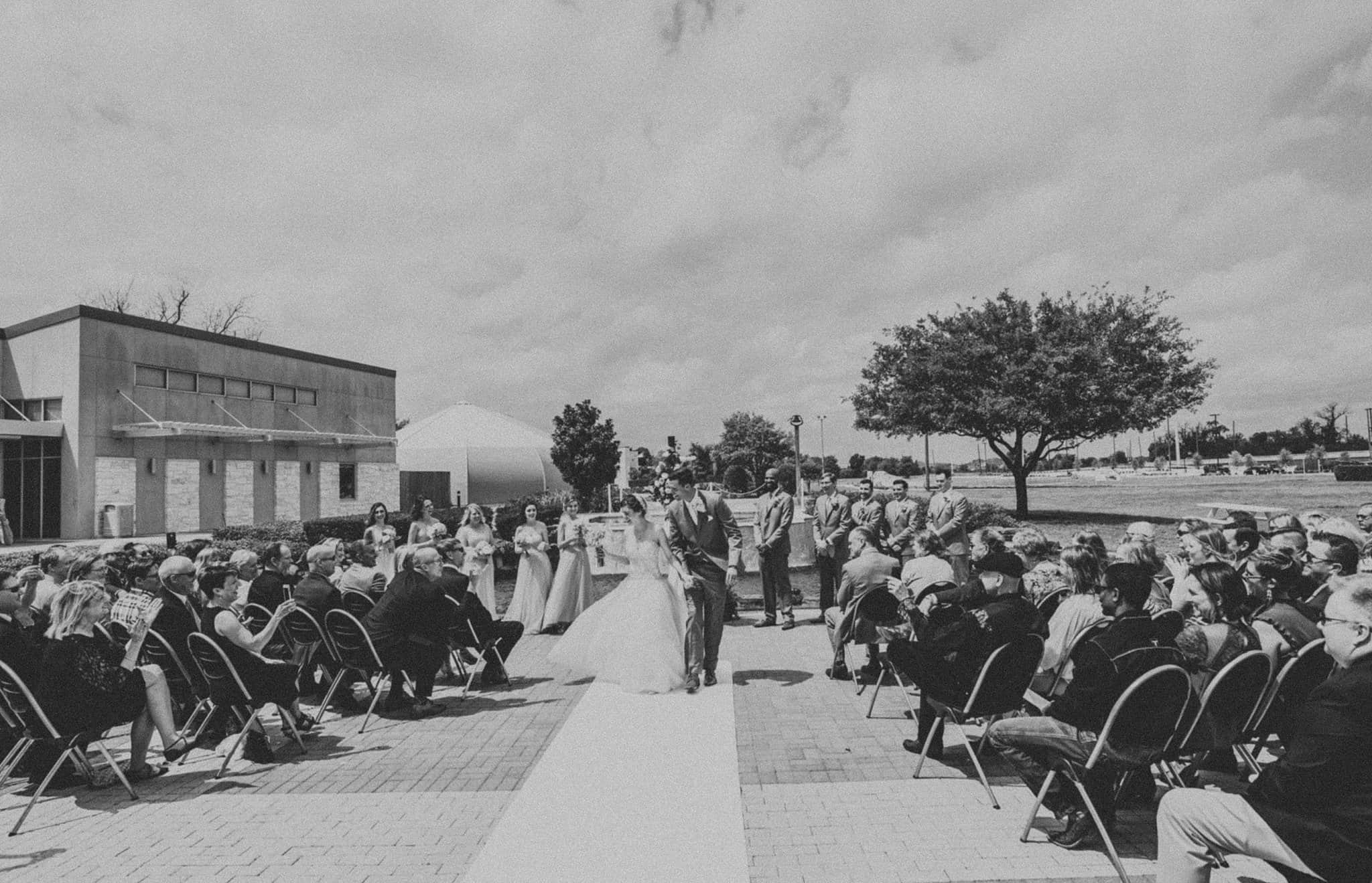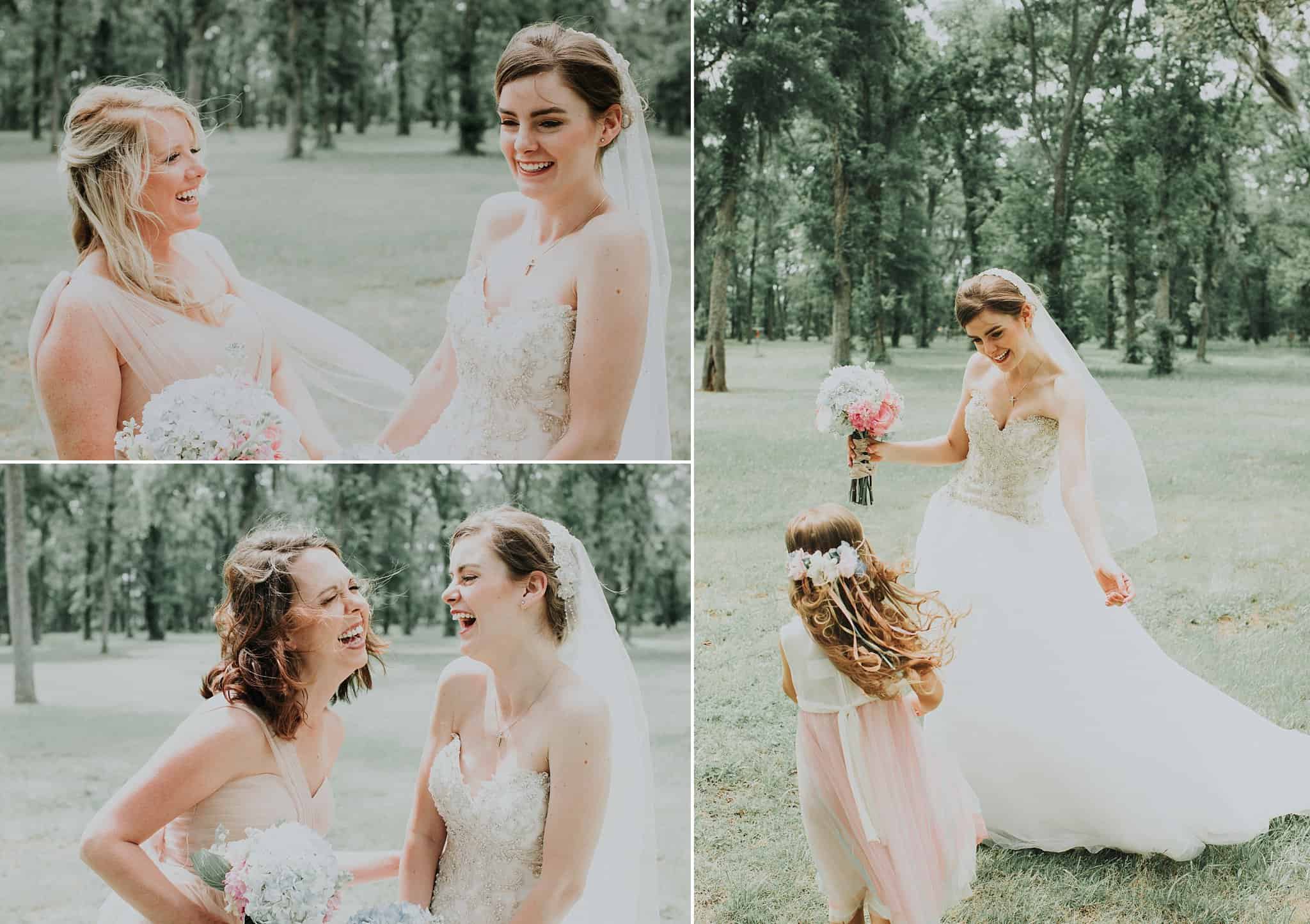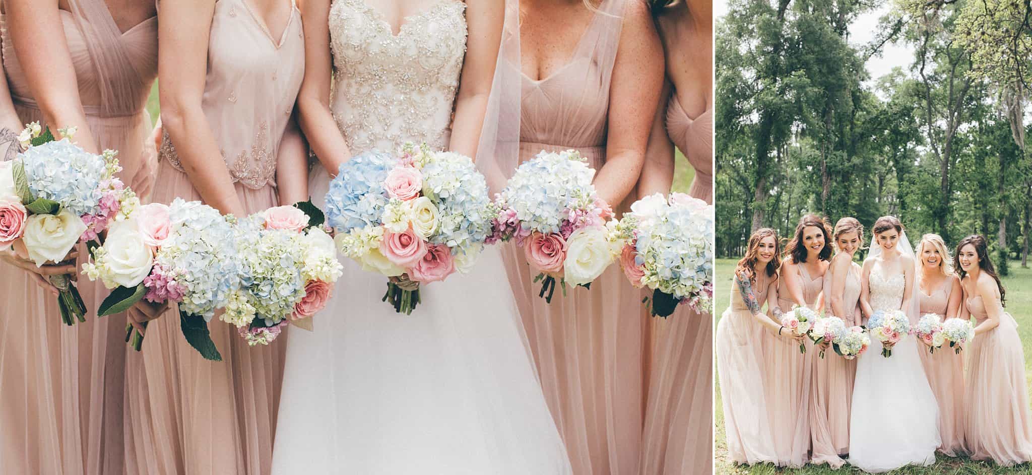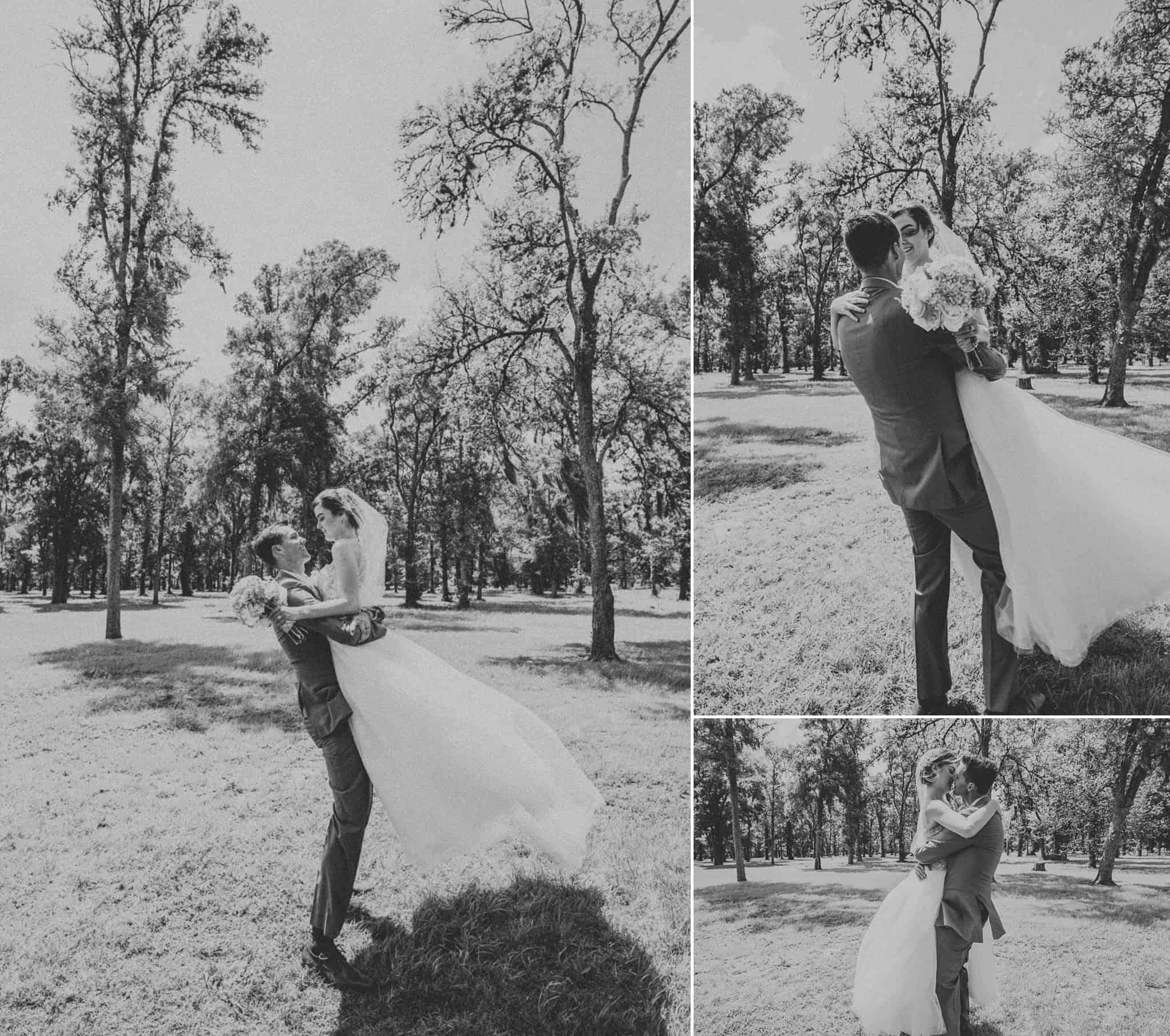 They had their ceremony outside at their church, River Pointe, in Richmond. We did couple and wedding party photos behind the church in a forest area and then headed to their fun + flirty reception at Fort Bend Country Club.