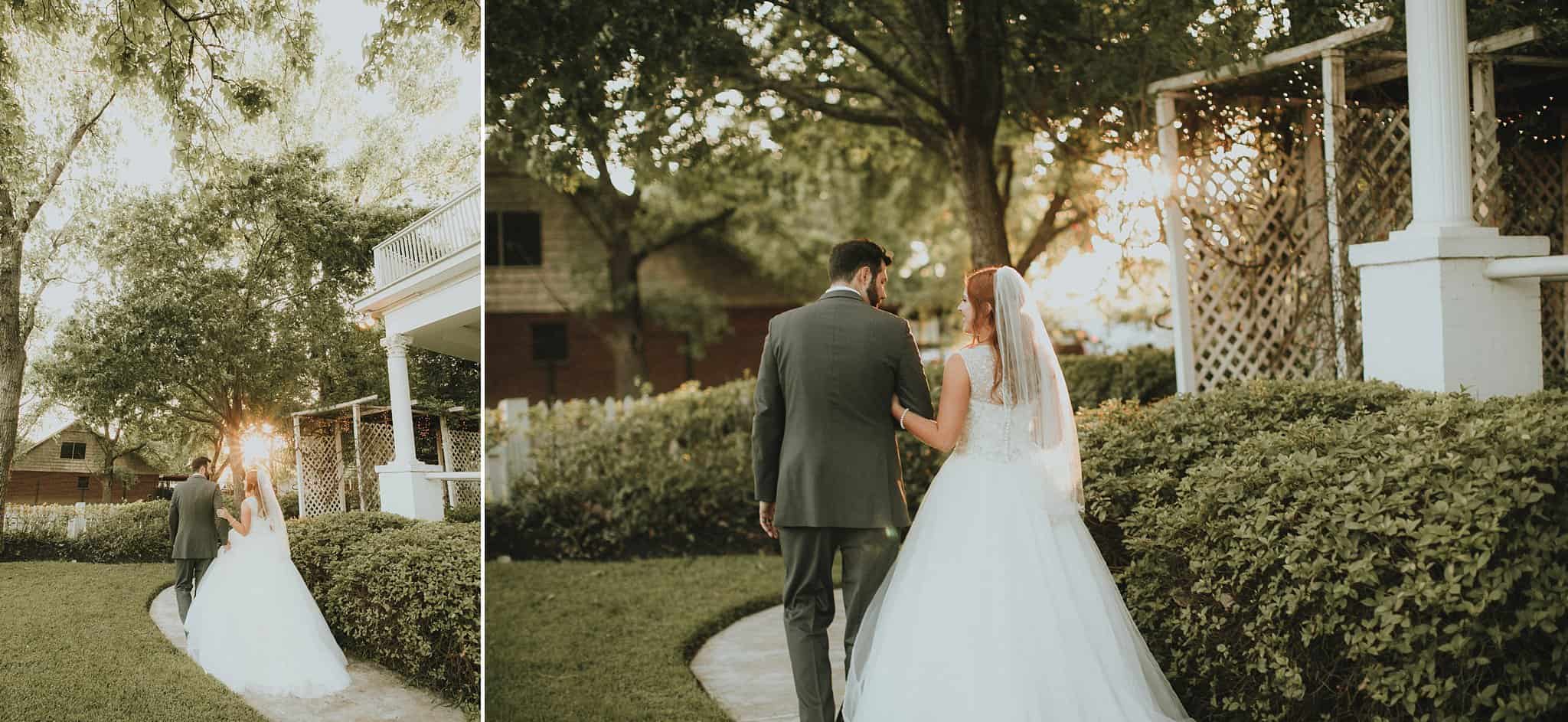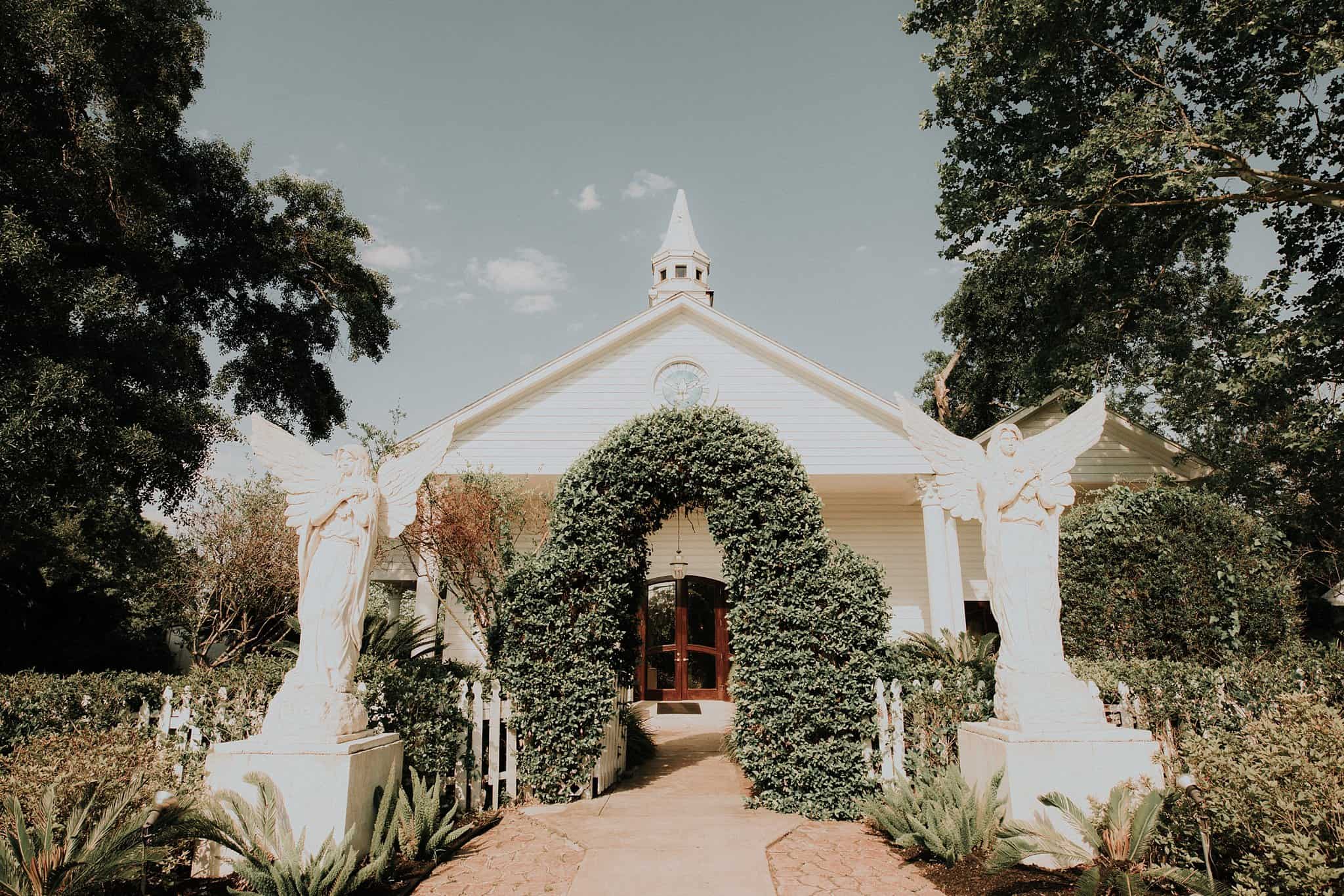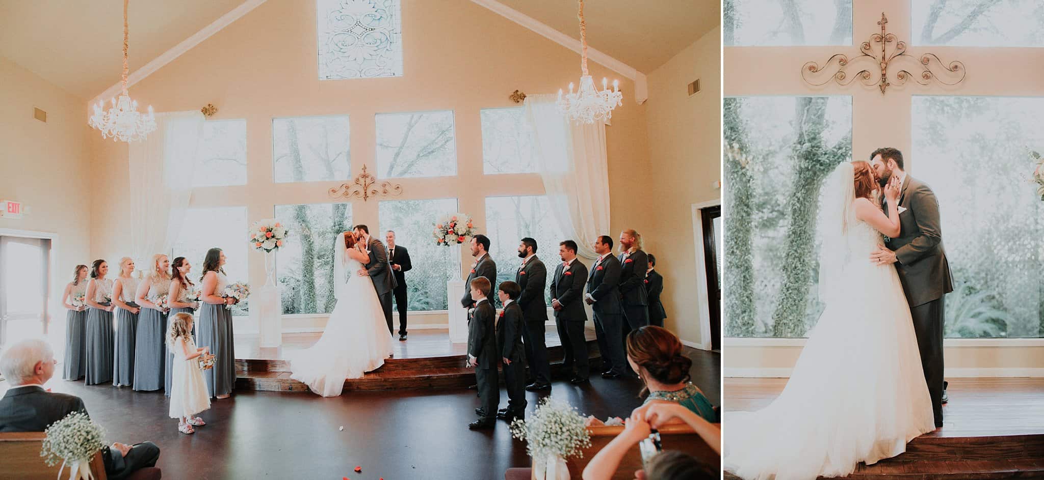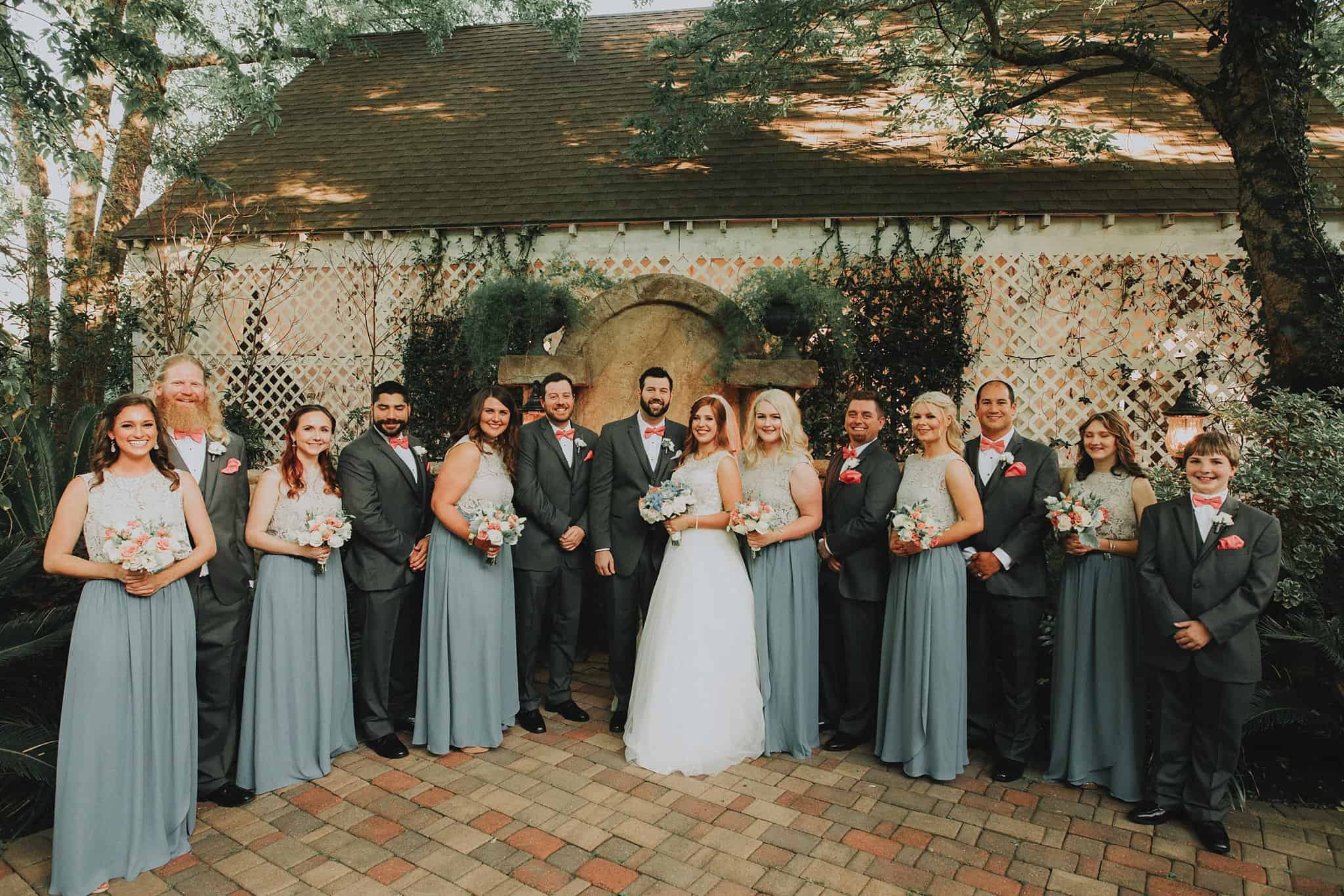 Caitlin got ready in her own bridal suite next to the ceremony chapel, while Austin had his own groom’s suite in the upstairs of a cute little building next door. They had total privacy with the entire venue and even though it is on a street in Conroe, it makes it feel like you’re in the middle of no where in your own Italian paradise. Around every corner is another whimsical detail. Caitlin gave Austin a watch before their ceremony, as well as a bridal portrait later during the reception. Austin gave her a beautiful box with sweet treasures inside. The ceremony was beautiful and afterwards we did couple formals as the sun set over the gardens. Friends and family celebrated throughout the night, being greeted by a polaroid guestbook, endless wine and snacks, a gorgeous dinner buffet that stretched out all throughout the side of the reception room. In the middle of the dance floor was a stunning water fountain that made it feel all the more Italian-esque.