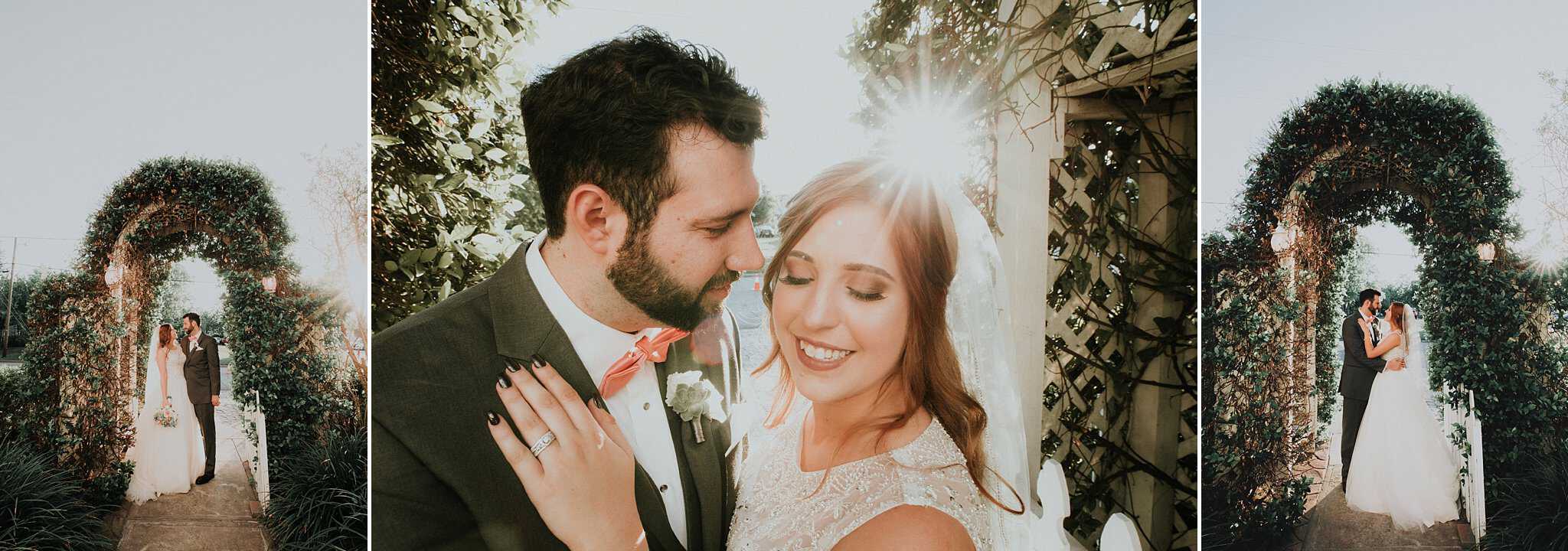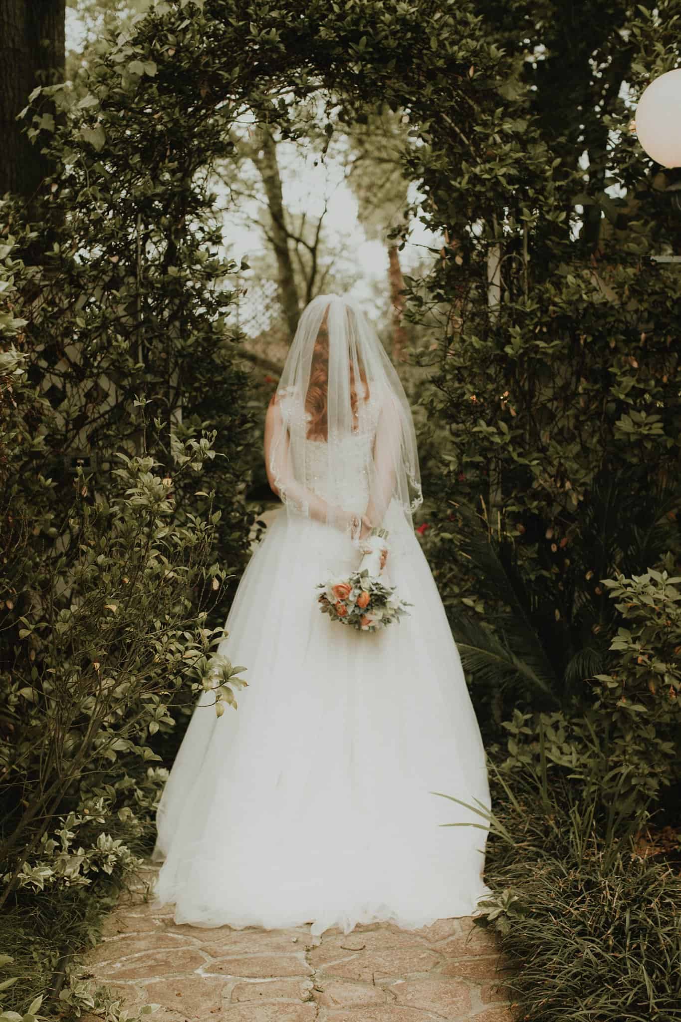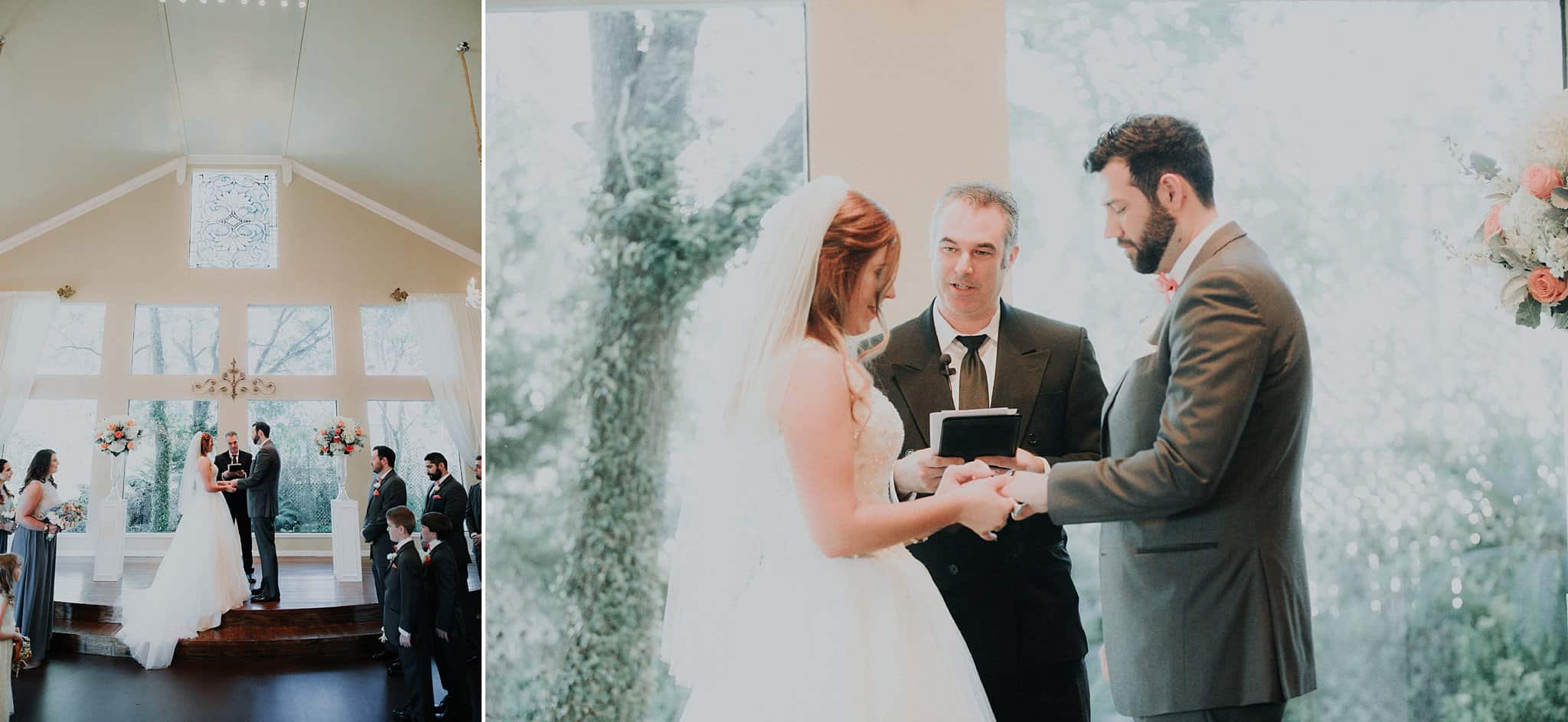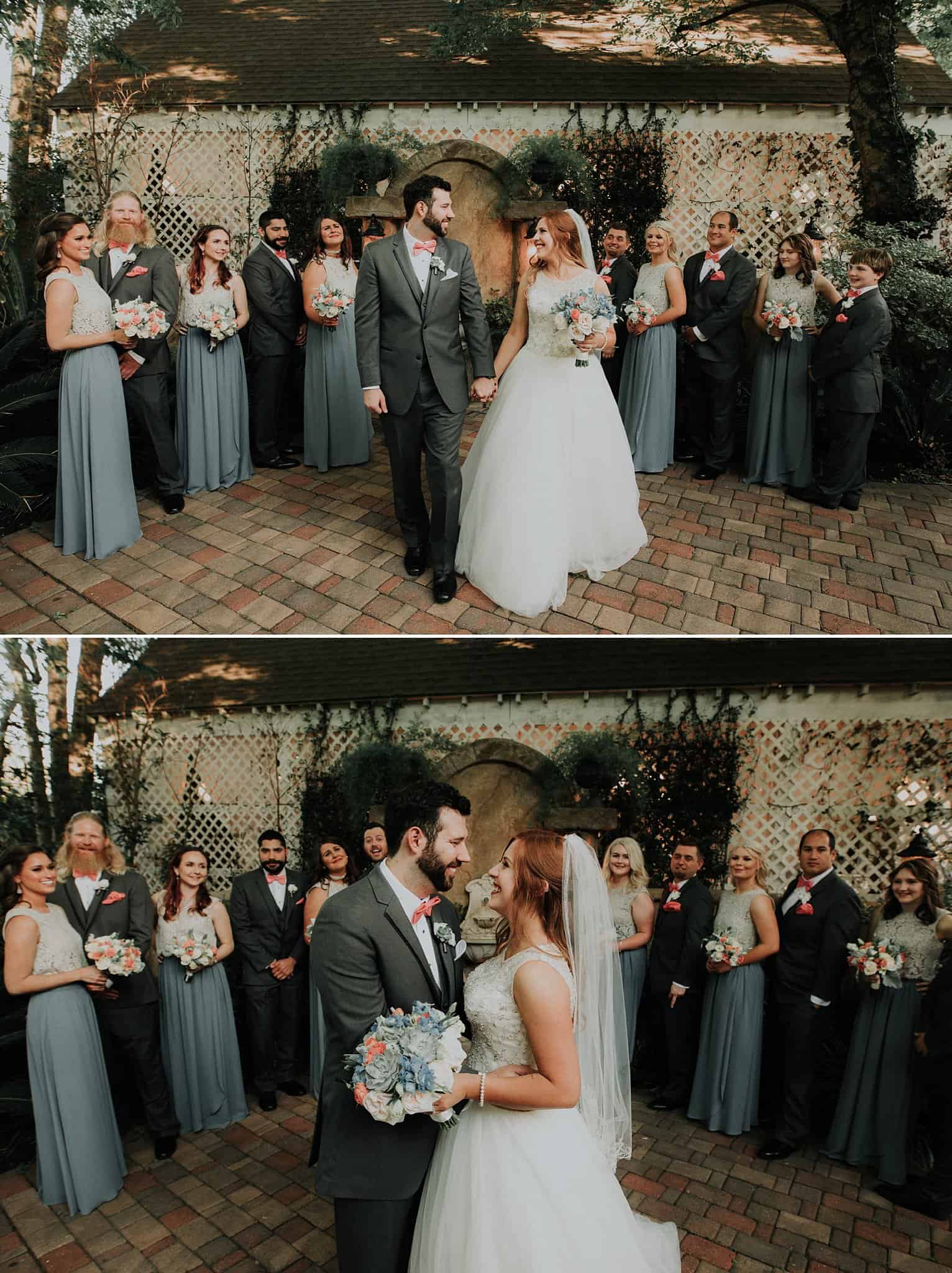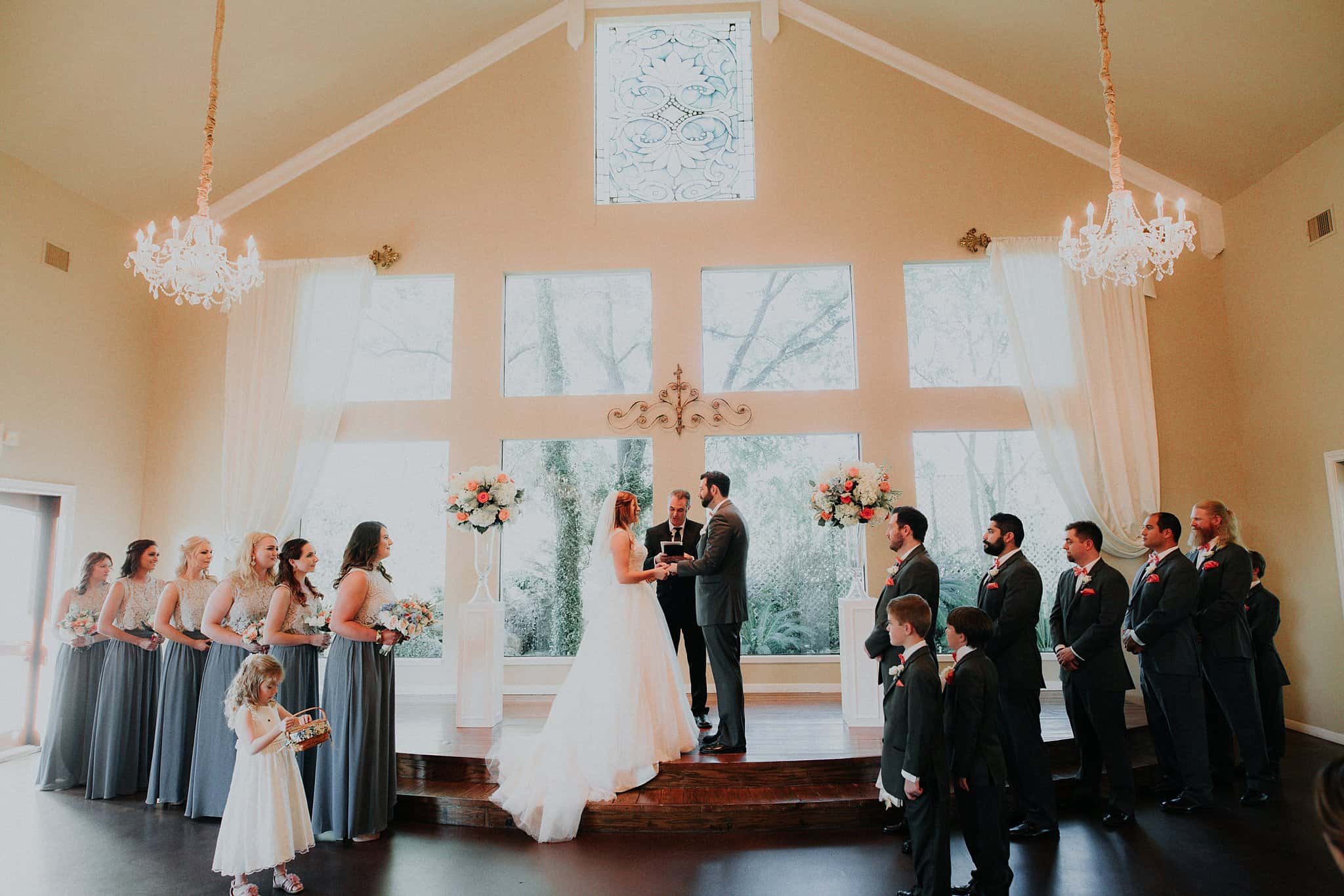 Caitlin got ready in her own bridal suite next to the ceremony chapel, while Austin had his own groom’s suite in the upstairs of a cute little building next door. They had total privacy with the entire venue and even though it is on a street in Conroe, it makes it feel like you’re in the middle of no where in your own Italian paradise. Around every corner is another whimsical detail. Caitlin gave Austin a watch before their ceremony, as well as a bridal portrait later during the reception. Austin gave her a beautiful box with sweet treasures inside. The ceremony was beautiful and afterwards we did couple formals as the sun set over the gardens. Friends and family celebrated throughout the night, being greeted by a polaroid guestbook, endless wine and snacks, a gorgeous dinner buffet that stretched out all throughout the side of the reception room. In the middle of the dance floor was a stunning water fountain that made it feel all the more Italian-esque.