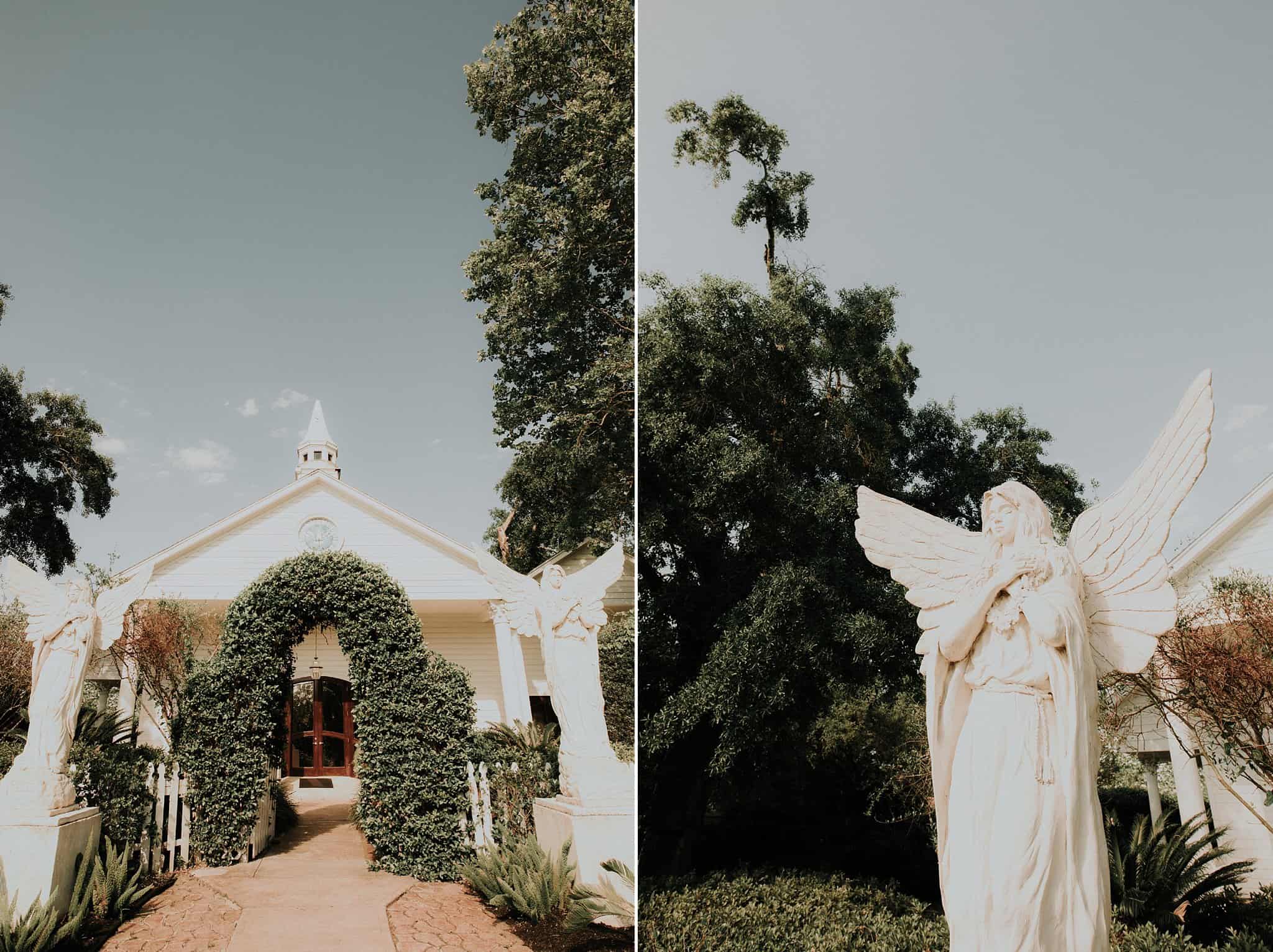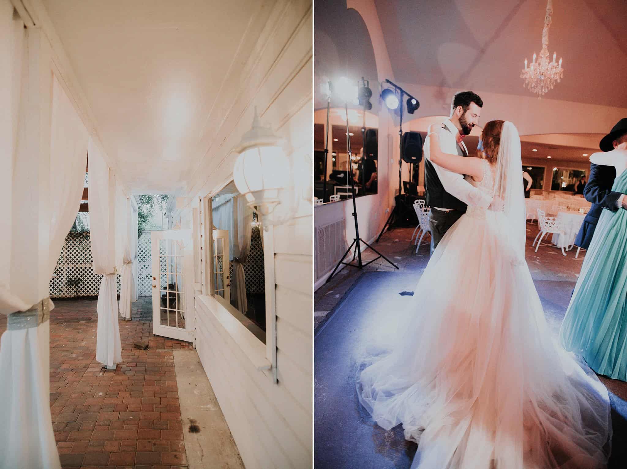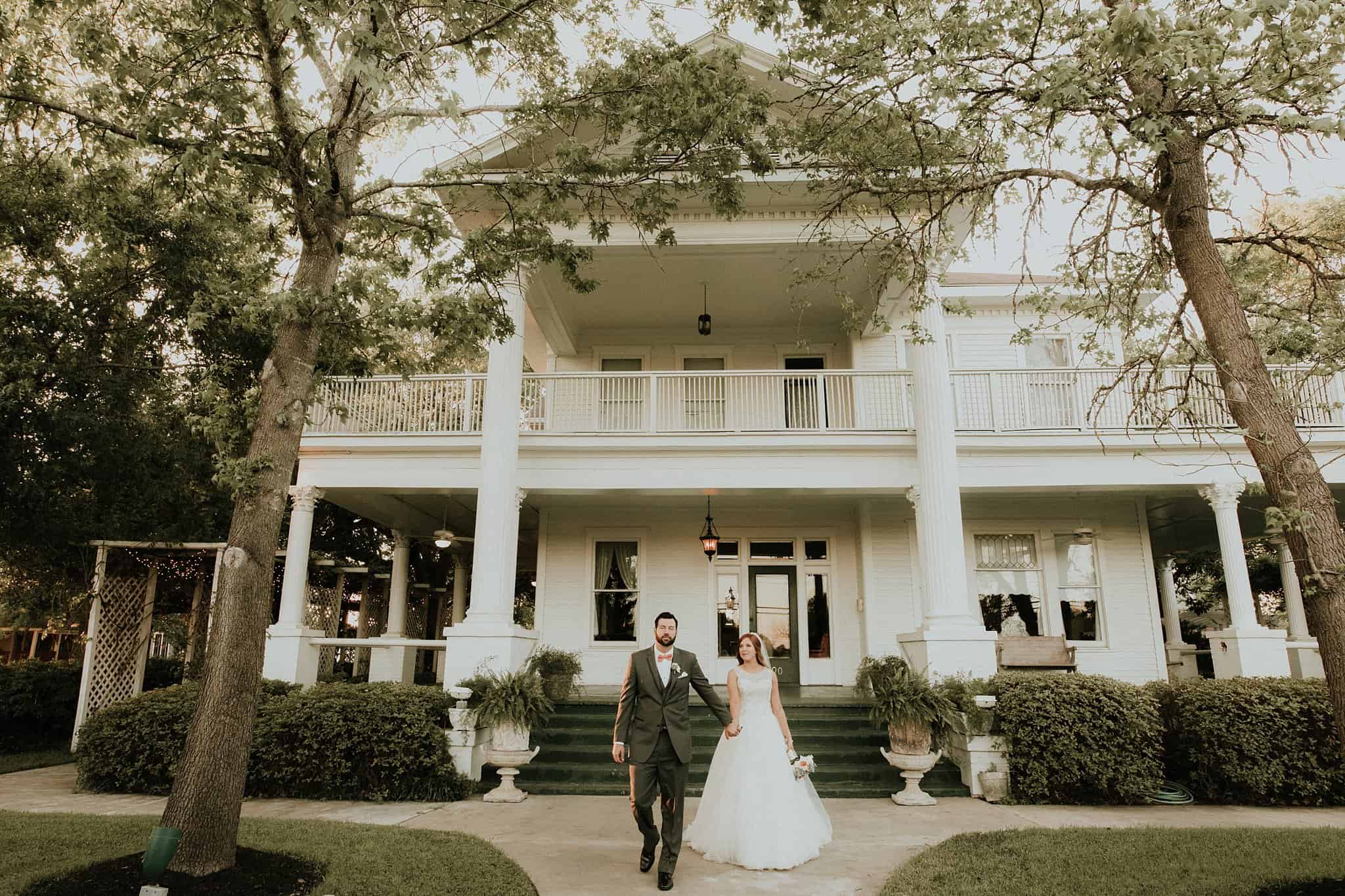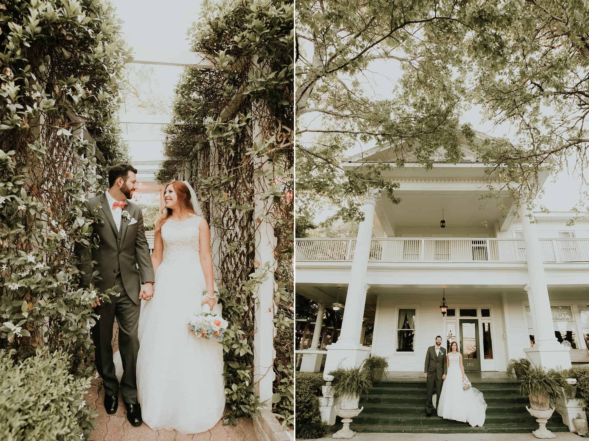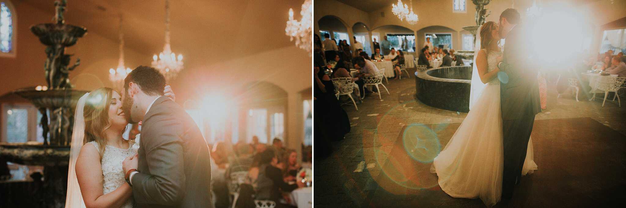 Caitlin got ready in her own bridal suite next to the ceremony chapel, while Austin had his own groom’s suite in the upstairs of a cute little building next door. They had total privacy with the entire venue and even though it is on a street in Conroe, it makes it feel like you’re in the middle of no where in your own Italian paradise. Around every corner is another whimsical detail. Caitlin gave Austin a watch before their ceremony, as well as a bridal portrait later during the reception. Austin gave her a beautiful box with sweet treasures inside. The ceremony was beautiful and afterwards we did couple formals as the sun set over the gardens. Friends and family celebrated throughout the night, being greeted by a polaroid guestbook, endless wine and snacks, a gorgeous dinner buffet that stretched out all throughout the side of the reception room. In the middle of the dance floor was a stunning water fountain that made it feel all the more Italian-esque.