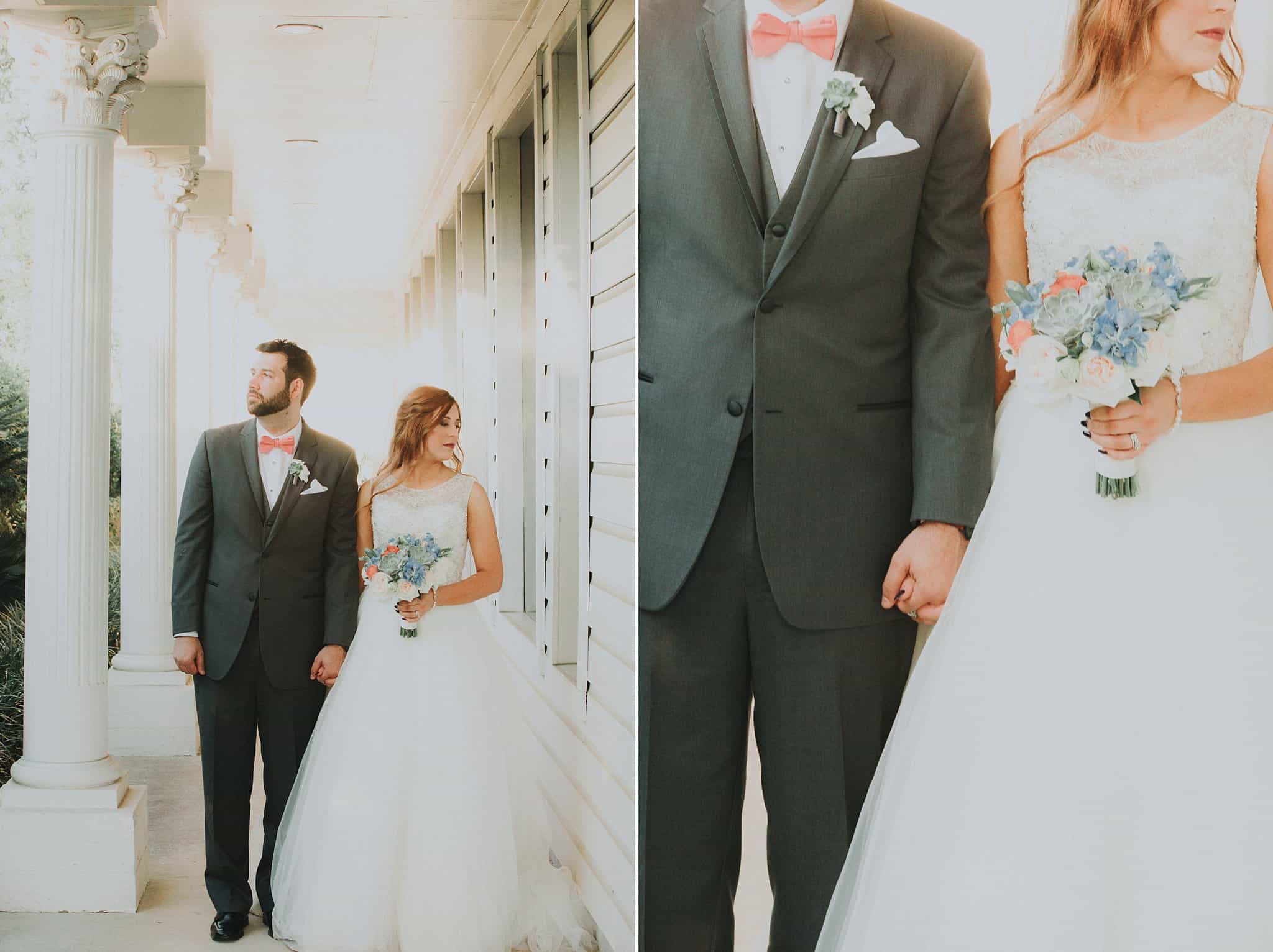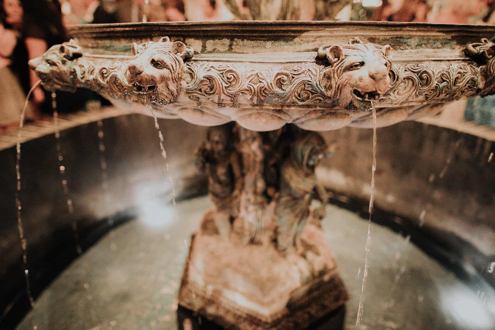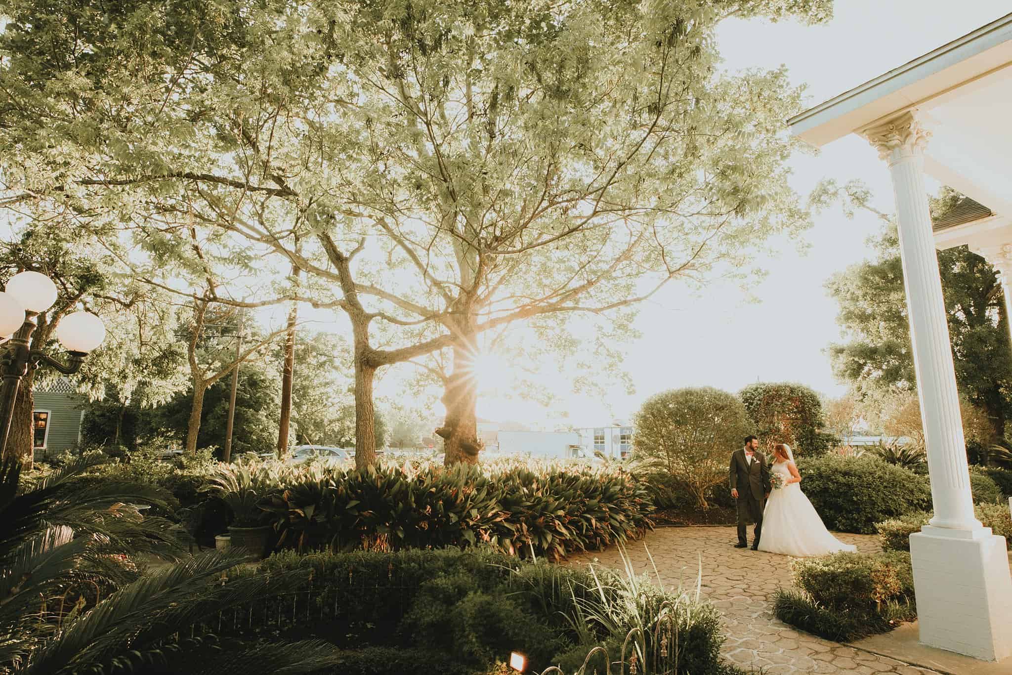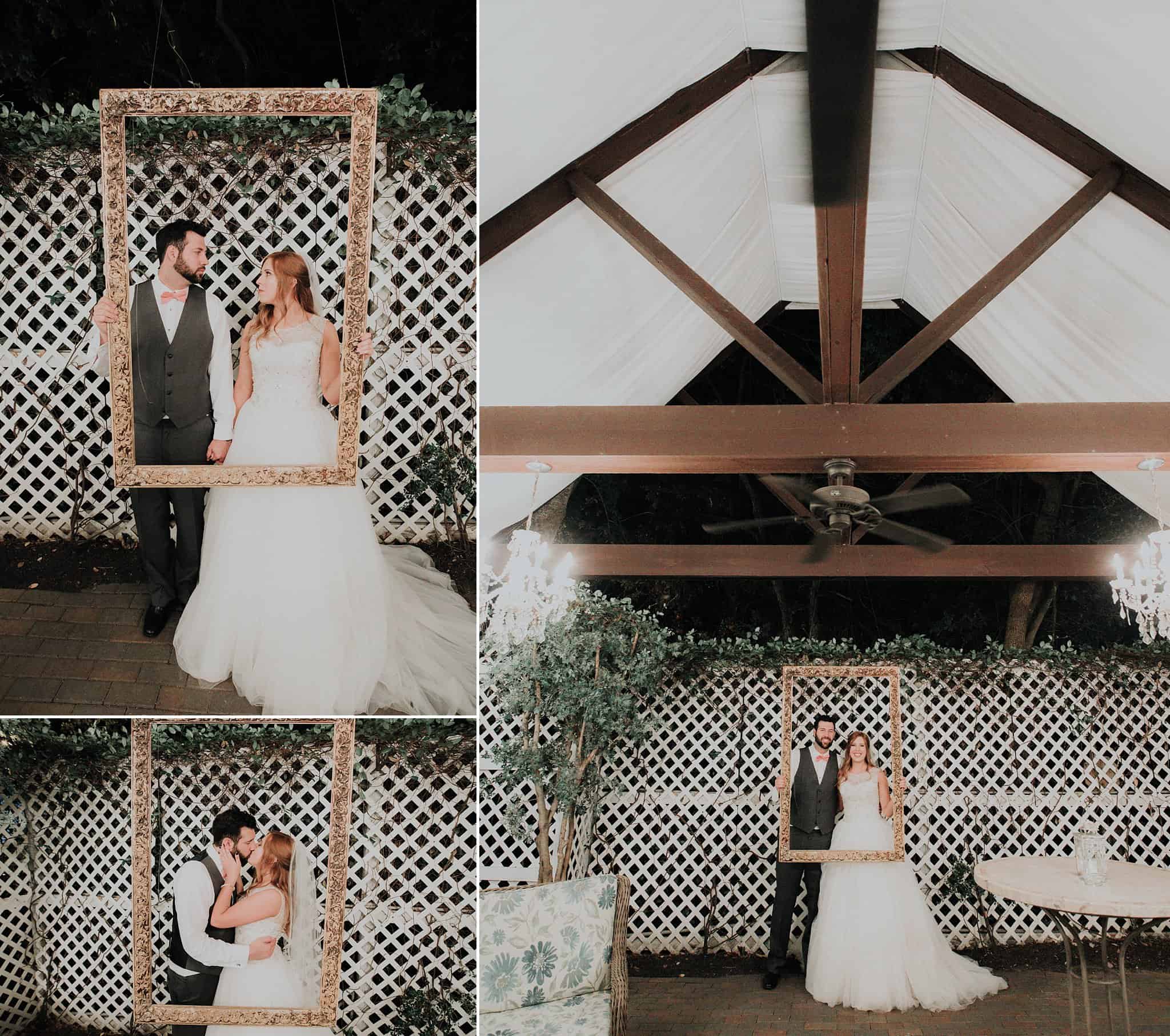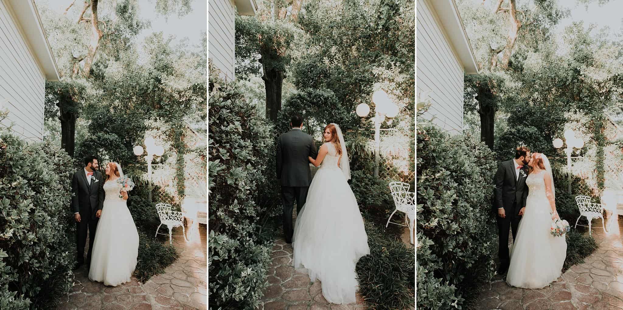 Caitlin got ready in her own bridal suite next to the ceremony chapel, while Austin had his own groom’s suite in the upstairs of a cute little building next door. They had total privacy with the entire venue and even though it is on a street in Conroe, it makes it feel like you’re in the middle of no where in your own Italian paradise. Around every corner is another whimsical detail. Caitlin gave Austin a watch before their ceremony, as well as a bridal portrait later during the reception. Austin gave her a beautiful box with sweet treasures inside. The ceremony was beautiful and afterwards we did couple formals as the sun set over the gardens. Friends and family celebrated throughout the night, being greeted by a polaroid guestbook, endless wine and snacks, a gorgeous dinner buffet that stretched out all throughout the side of the reception room. In the middle of the dance floor was a stunning water fountain that made it feel all the more Italian-esque.