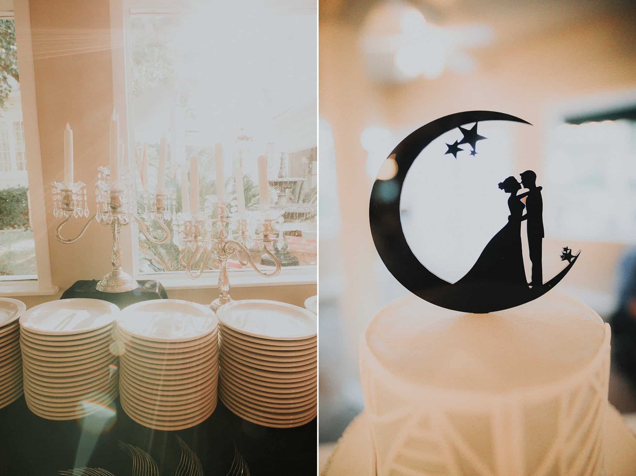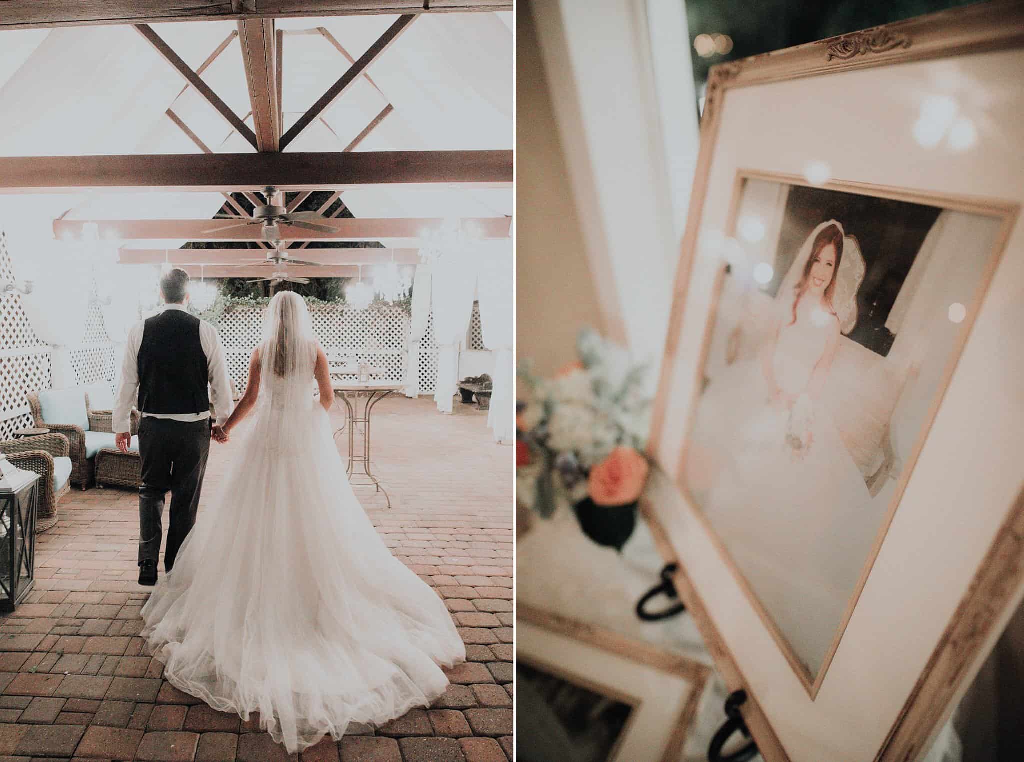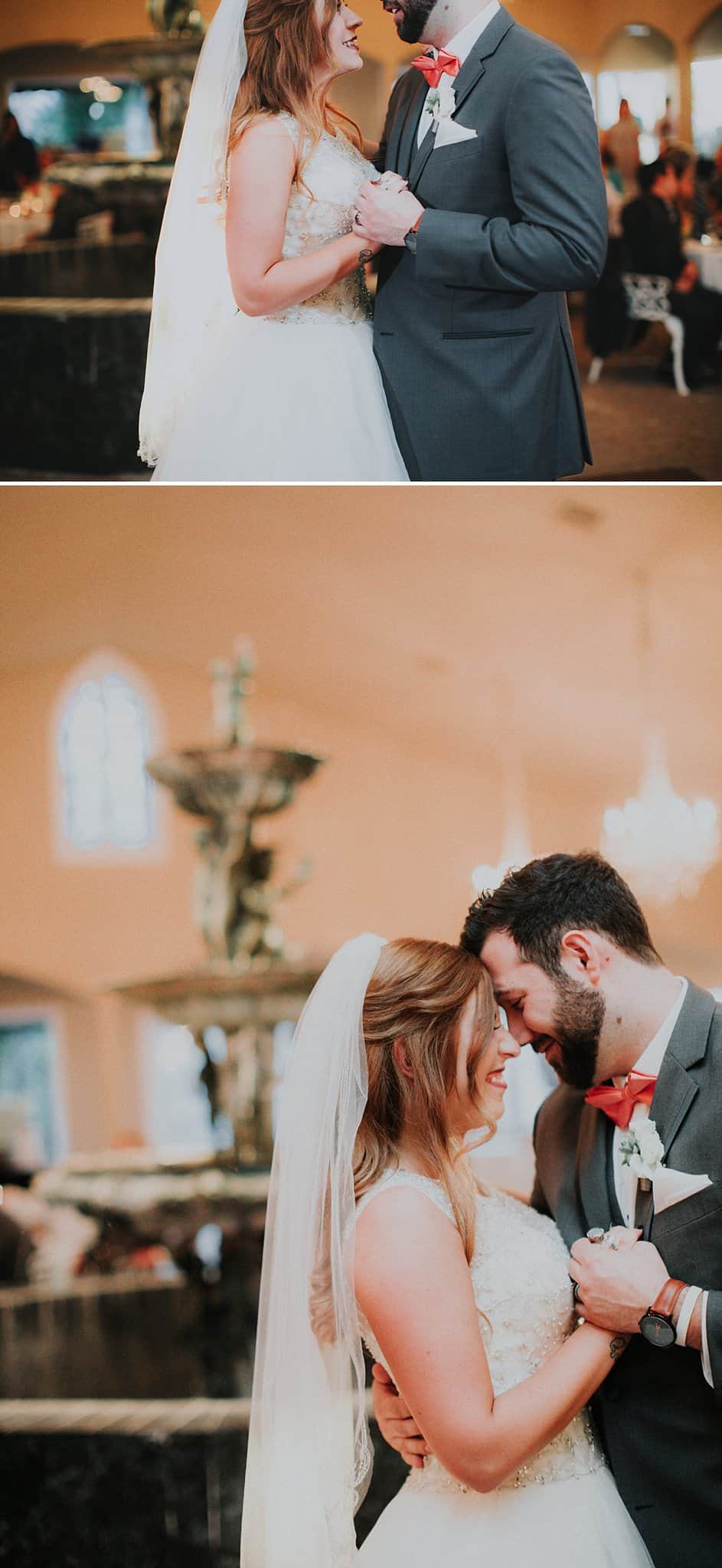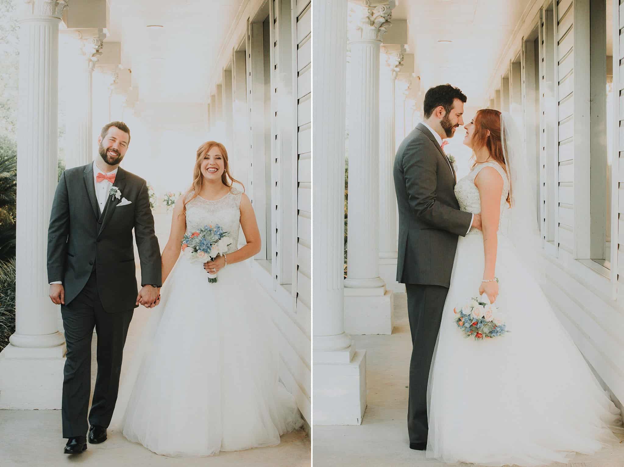 Caitlin got ready in her own bridal suite next to the ceremony chapel, while Austin had his own groom’s suite in the upstairs of a cute little building next door. They had total privacy with the entire venue and even though it is on a street in Conroe, it makes it feel like you’re in the middle of no where in your own Italian paradise. Around every corner is another whimsical detail. Caitlin gave Austin a watch before their ceremony, as well as a bridal portrait later during the reception. Austin gave her a beautiful box with sweet treasures inside. The ceremony was beautiful and afterwards we did couple formals as the sun set over the gardens. Friends and family celebrated throughout the night, being greeted by a polaroid guestbook, endless wine and snacks, a gorgeous dinner buffet that stretched out all throughout the side of the reception room. In the middle of the dance floor was a stunning water fountain that made it feel all the more Italian-esque.