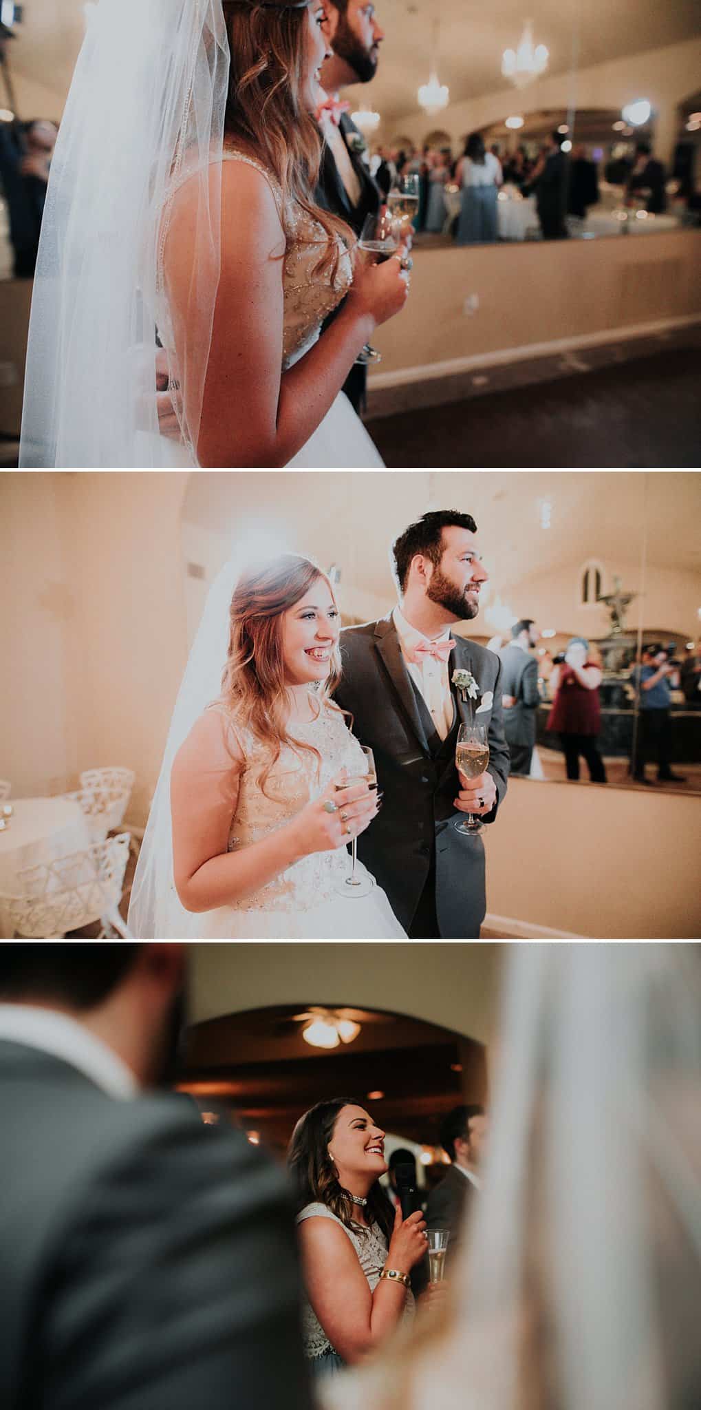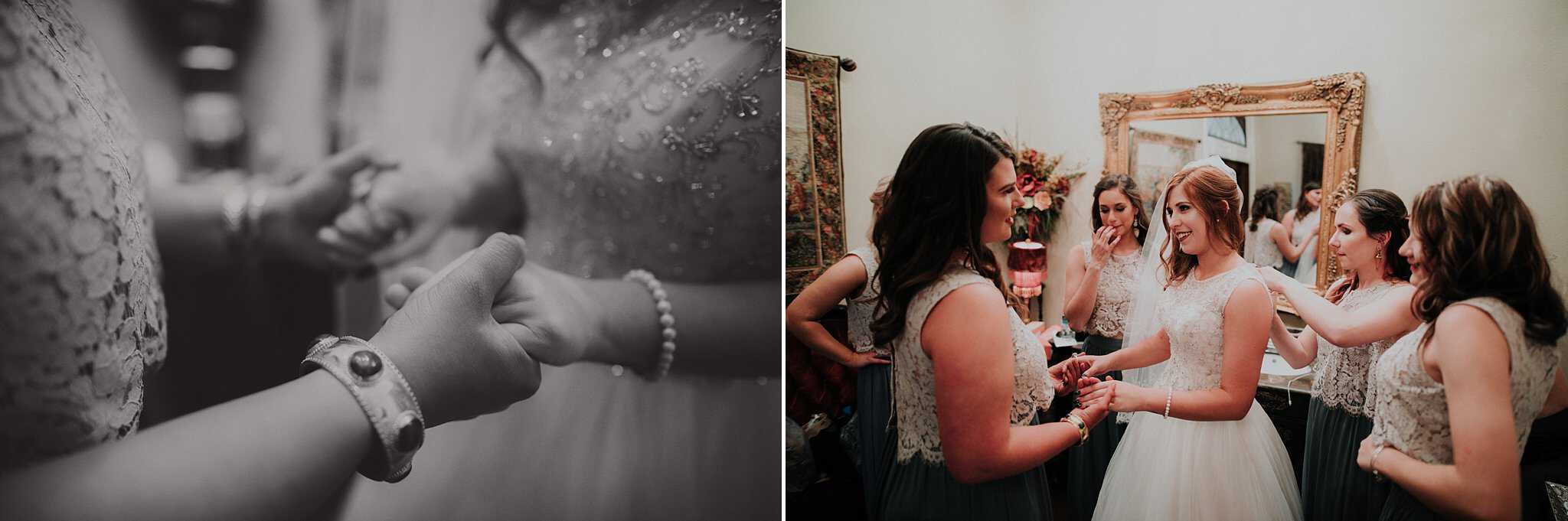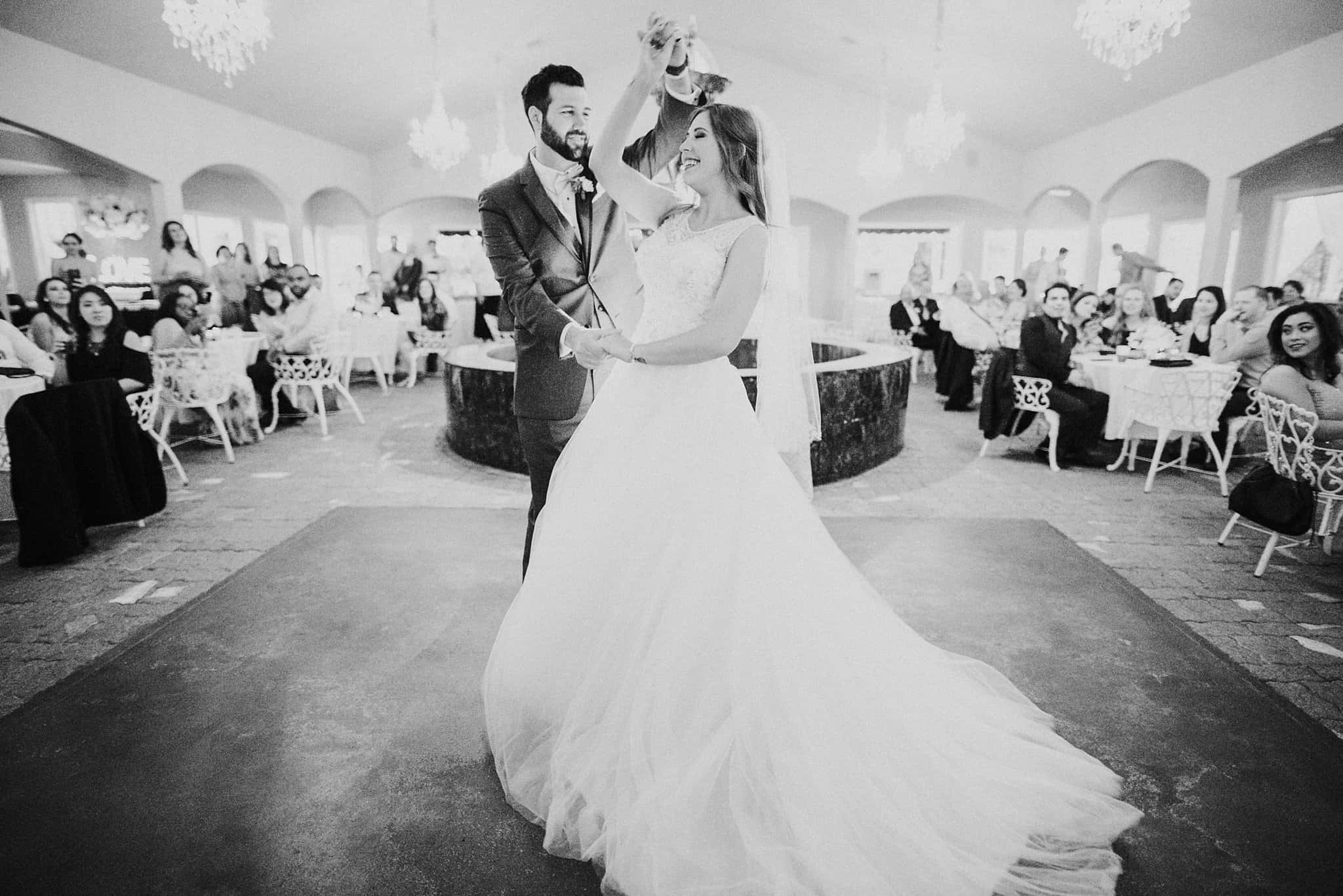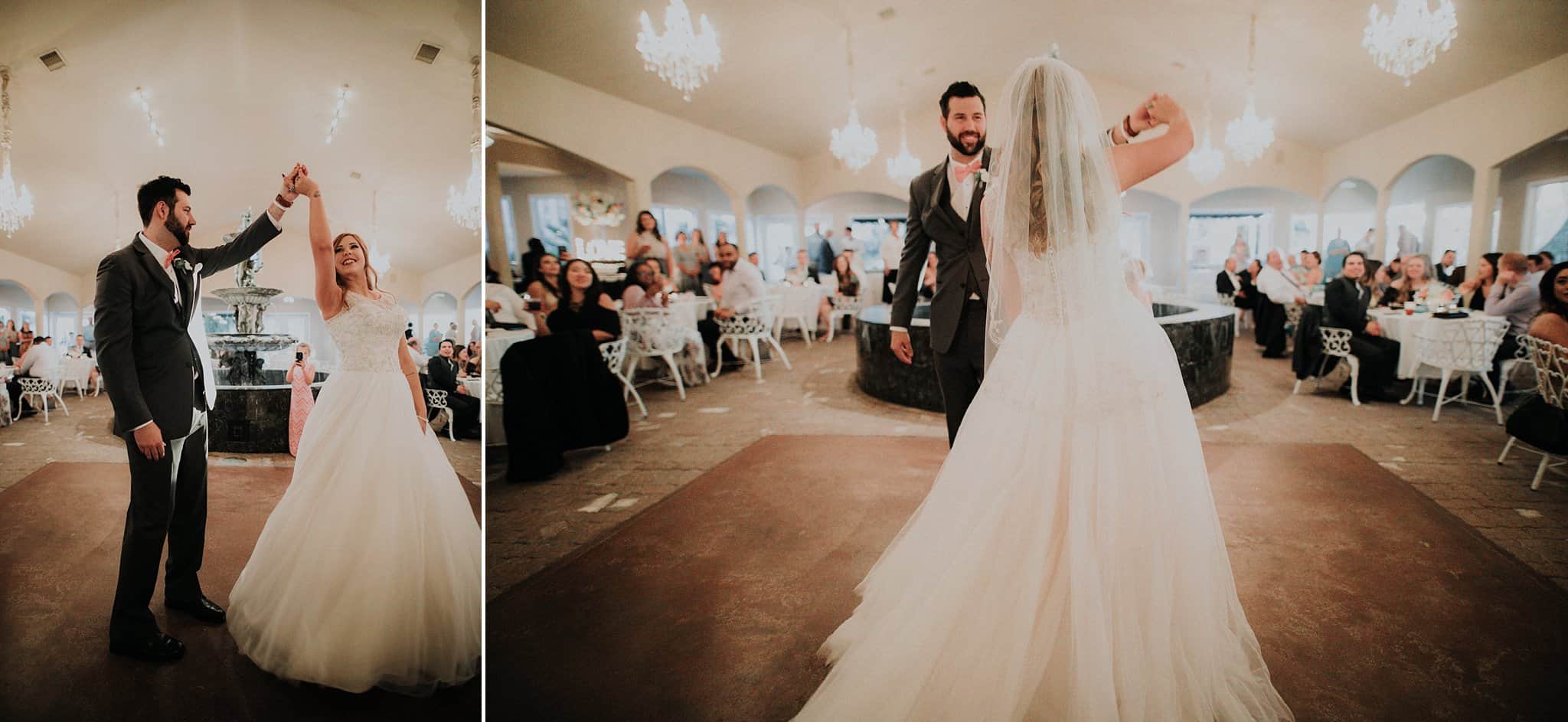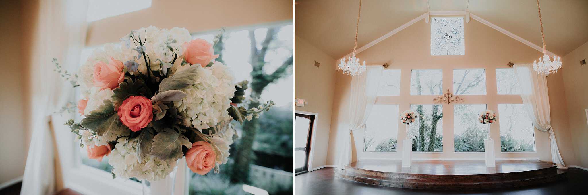 Caitlin got ready in her own bridal suite next to the ceremony chapel, while Austin had his own groom’s suite in the upstairs of a cute little building next door. They had total privacy with the entire venue and even though it is on a street in Conroe, it makes it feel like you’re in the middle of no where in your own Italian paradise. Around every corner is another whimsical detail. Caitlin gave Austin a watch before their ceremony, as well as a bridal portrait later during the reception. Austin gave her a beautiful box with sweet treasures inside. The ceremony was beautiful and afterwards we did couple formals as the sun set over the gardens. Friends and family celebrated throughout the night, being greeted by a polaroid guestbook, endless wine and snacks, a gorgeous dinner buffet that stretched out all throughout the side of the reception room. In the middle of the dance floor was a stunning water fountain that made it feel all the more Italian-esque.