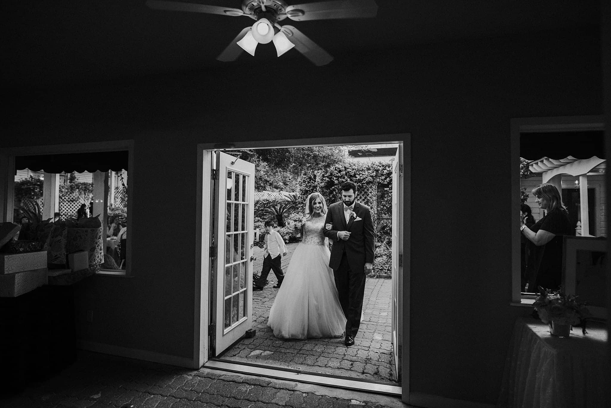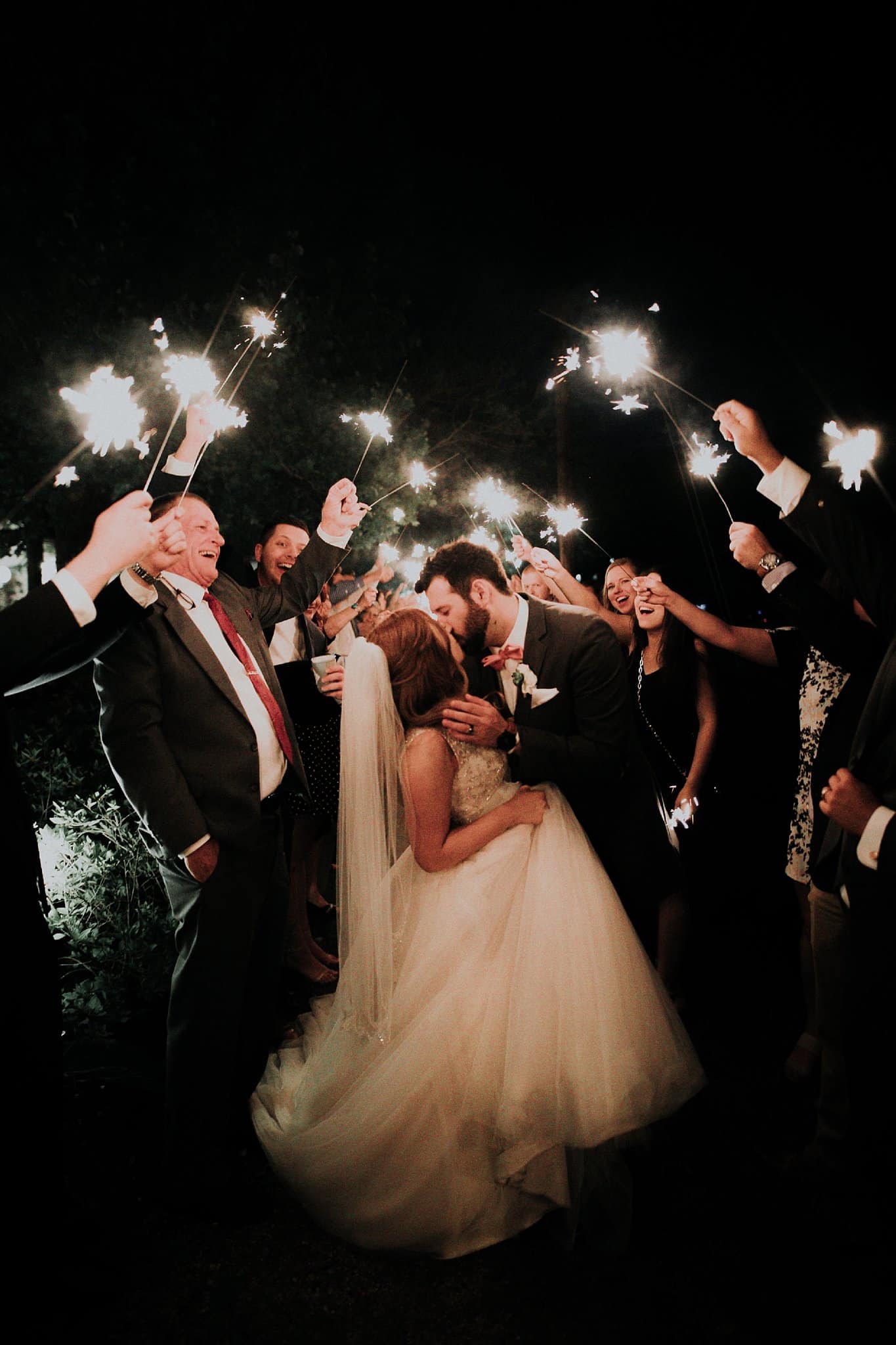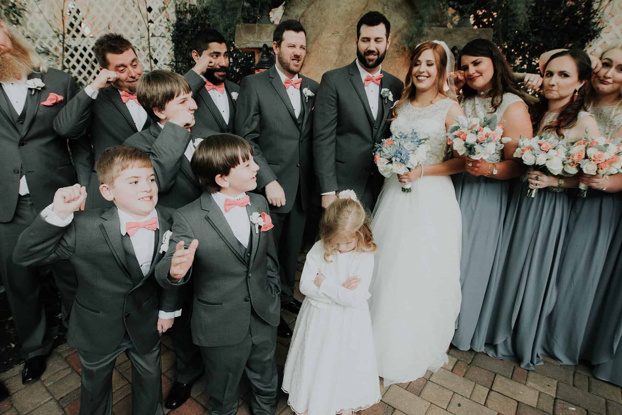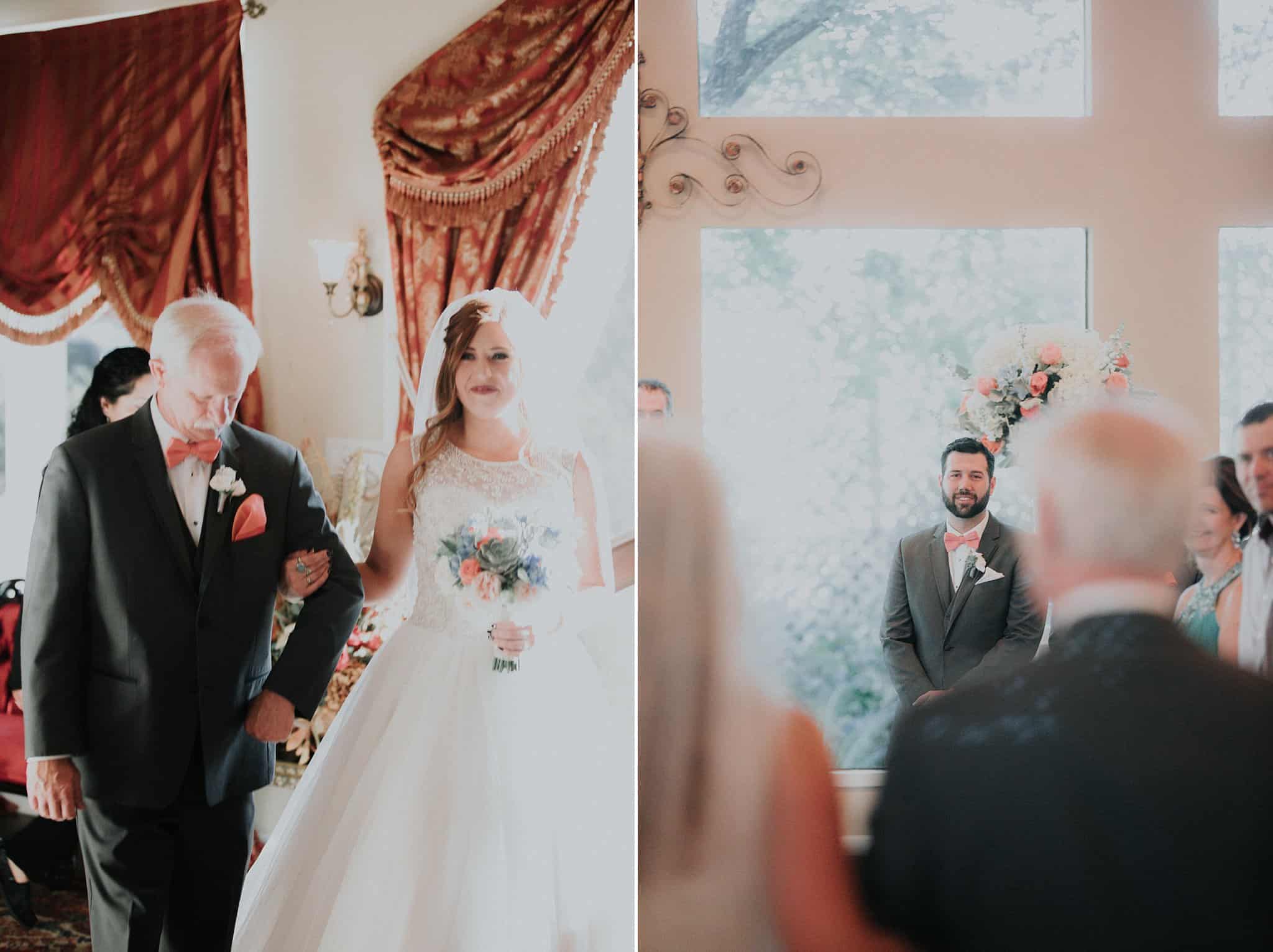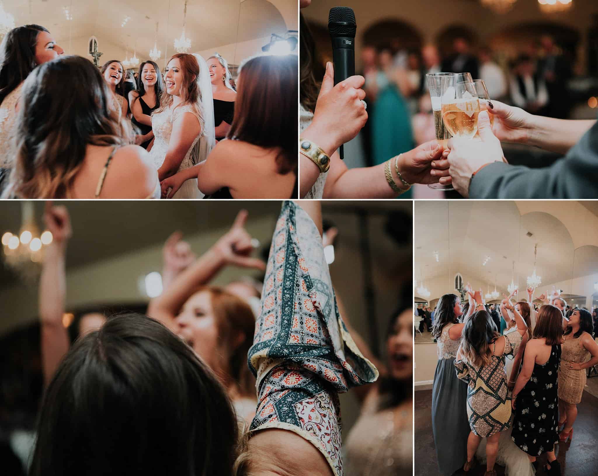 Caitlin got ready in her own bridal suite next to the ceremony chapel, while Austin had his own groom’s suite in the upstairs of a cute little building next door. They had total privacy with the entire venue and even though it is on a street in Conroe, it makes it feel like you’re in the middle of no where in your own Italian paradise. Around every corner is another whimsical detail. Caitlin gave Austin a watch before their ceremony, as well as a bridal portrait later during the reception. Austin gave her a beautiful box with sweet treasures inside. The ceremony was beautiful and afterwards we did couple formals as the sun set over the gardens. Friends and family celebrated throughout the night, being greeted by a polaroid guestbook, endless wine and snacks, a gorgeous dinner buffet that stretched out all throughout the side of the reception room. In the middle of the dance floor was a stunning water fountain that made it feel all the more Italian-esque.
